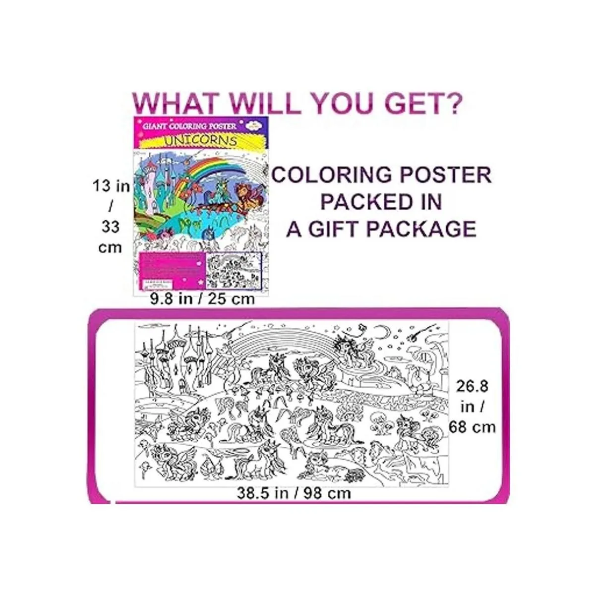ALEX Art, Póster grande para colorear Unicornio de arte y manualidades Hoja gigante para colorear para niños Divertidos regalos de cumpleaños creativos para niñas Tamaño de pared de página grande extra grande