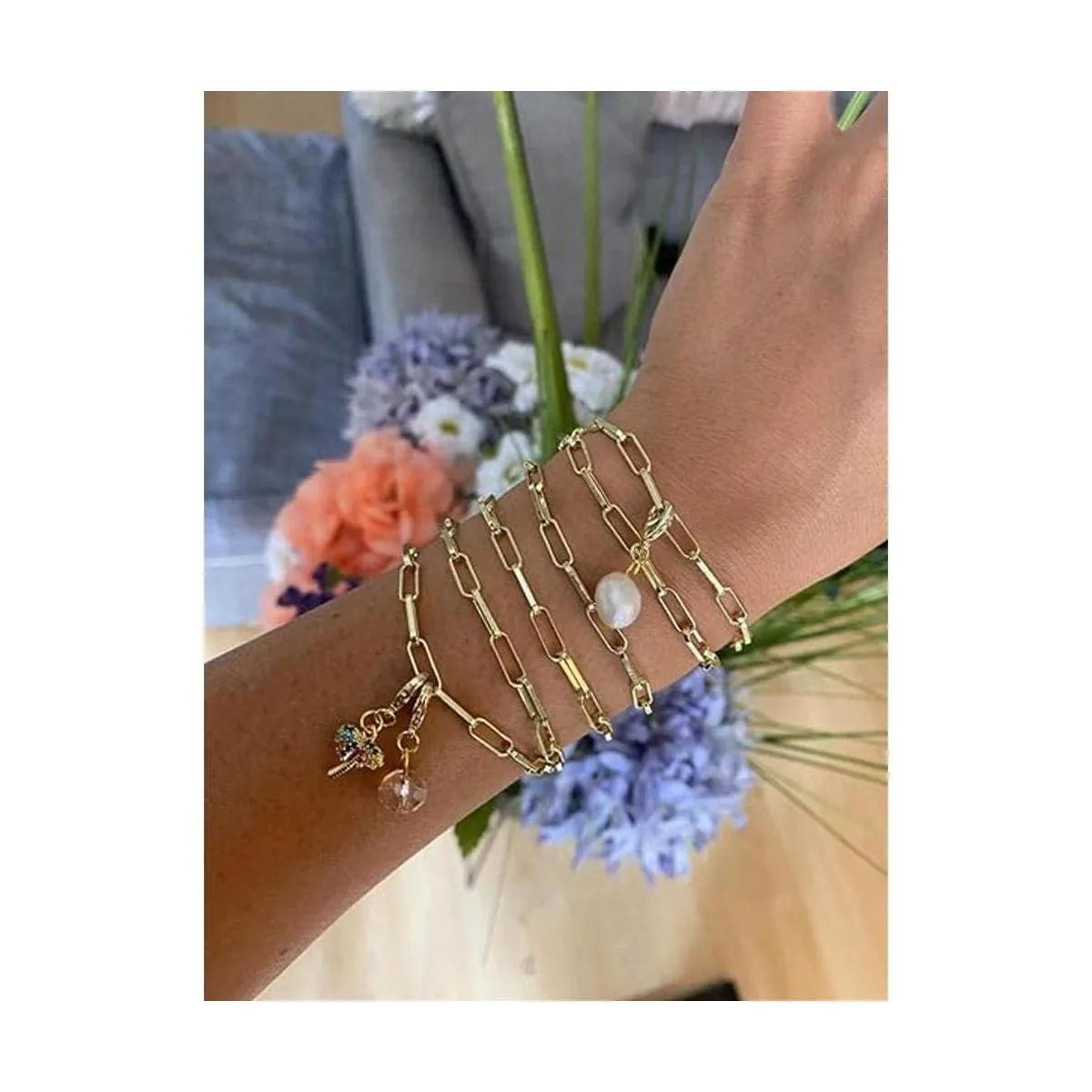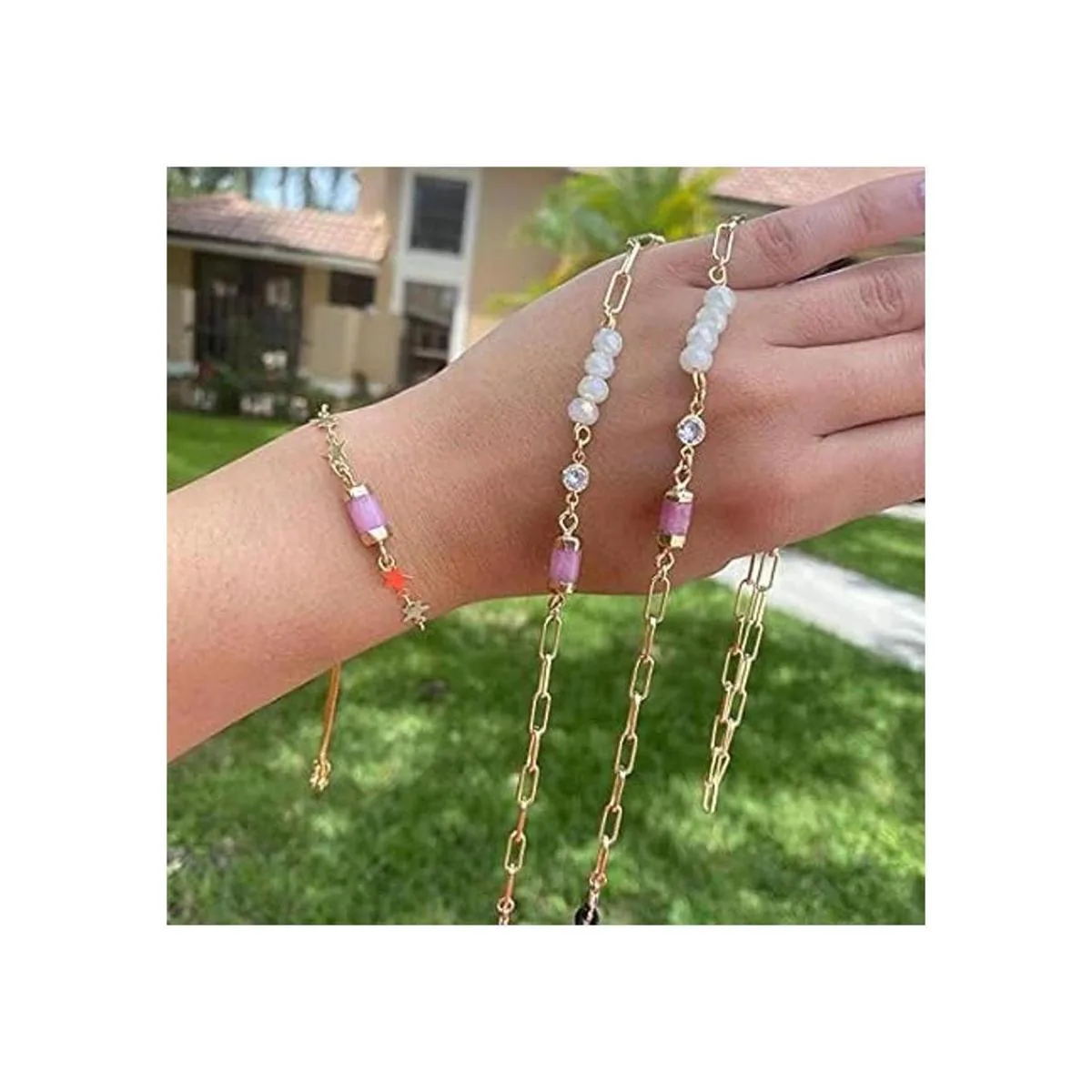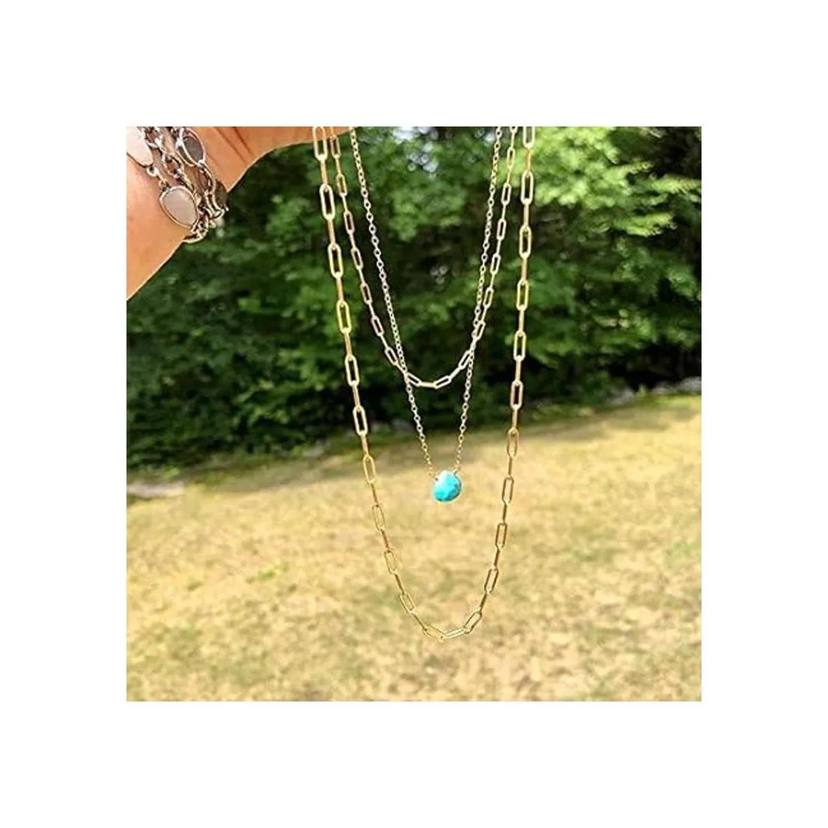 La longitud de la cadena es de aproximadamente 11.8 ft. Fuerte y duradero. Chapado ecológico, sin plomo, níquel y alergias. Con el cuidado adecuado, el color no se desvanece en unos 2 años.