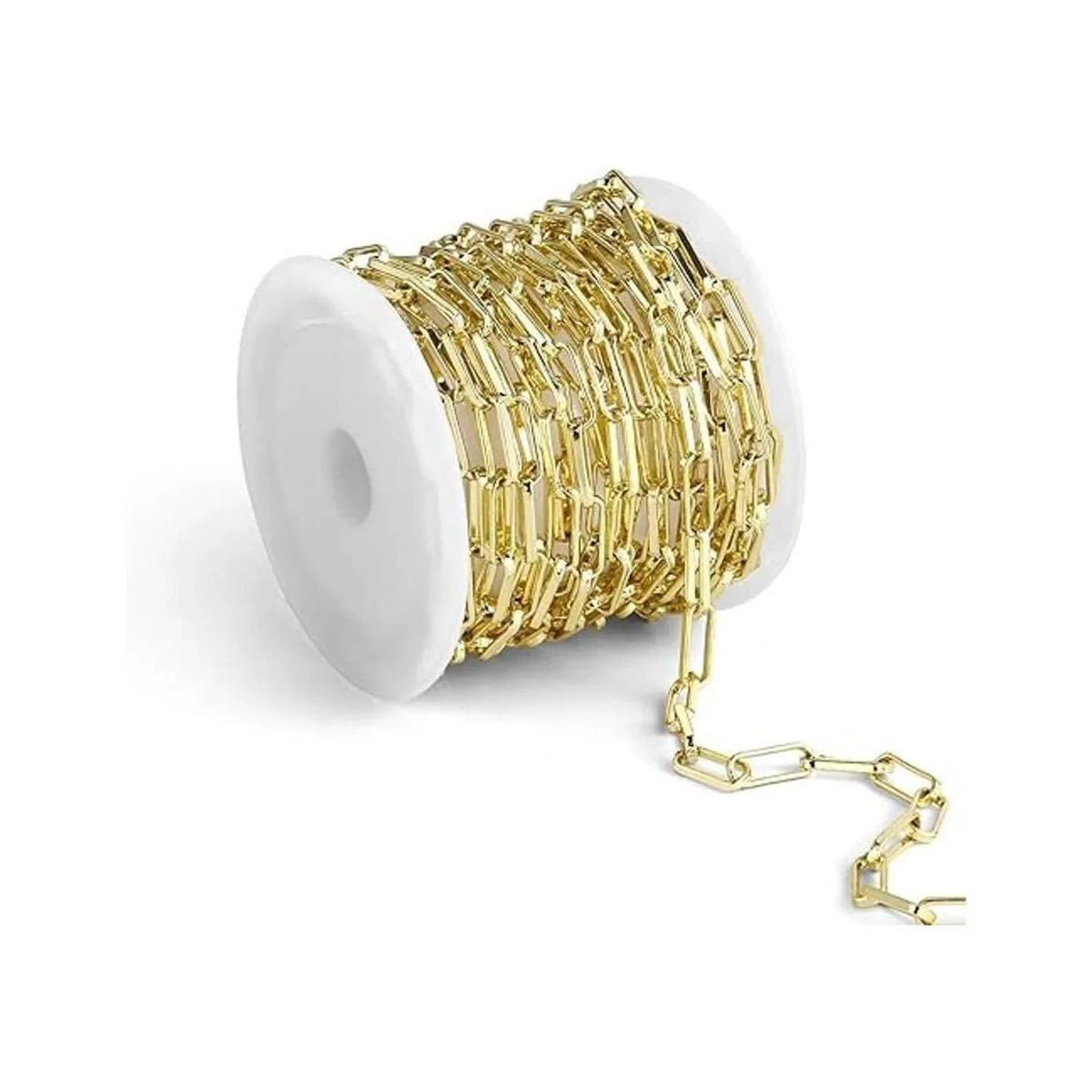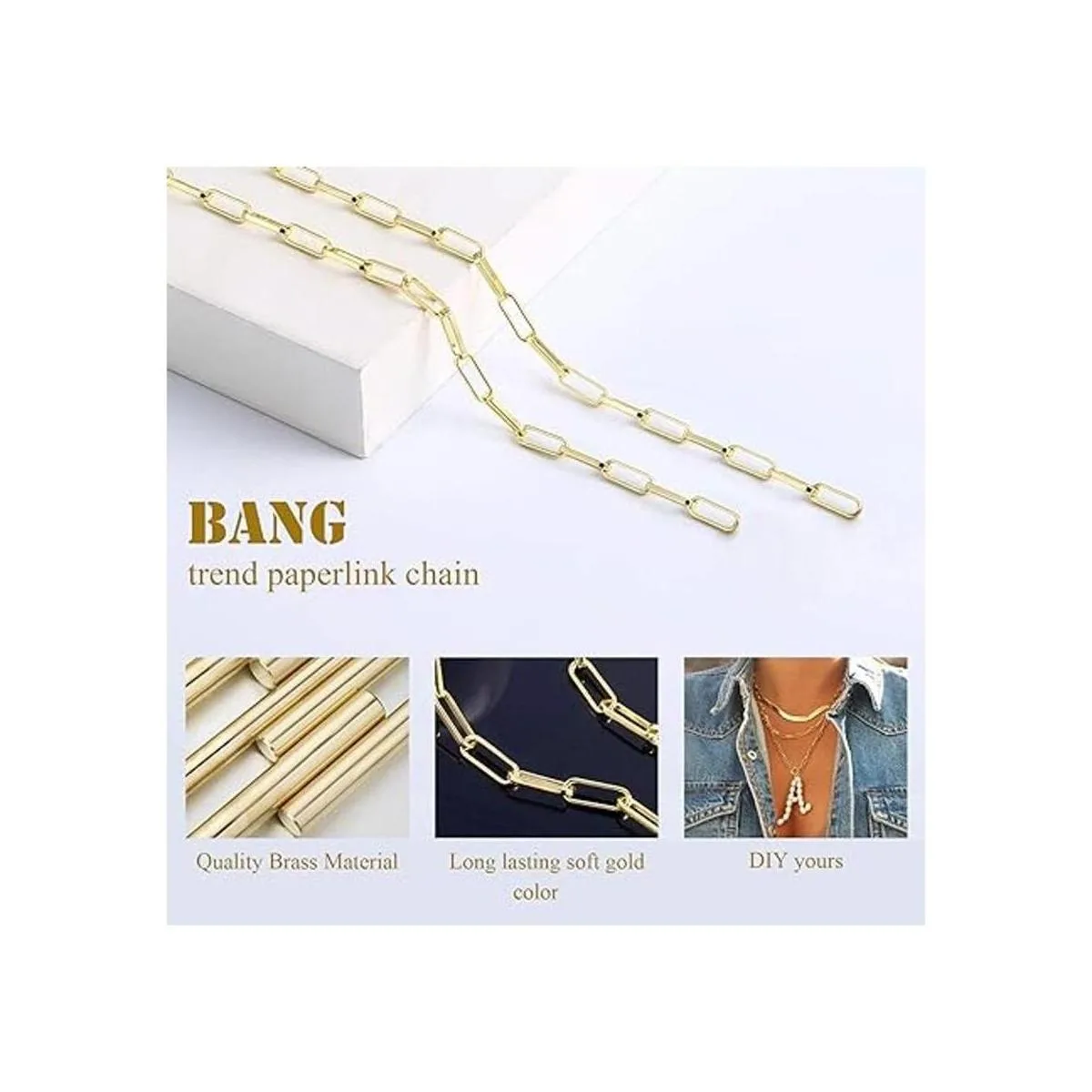 Hechas de latón macizo chapado en oro de 14 quilates, estas cadenas de clip de oro se ven brillantes y brillantes en la vida real. Cadena de latón de color oro claro muy decente. Puedes hacer 89 cadenas de 16 pulgadas o 78 cadenas de 18 pulgadas