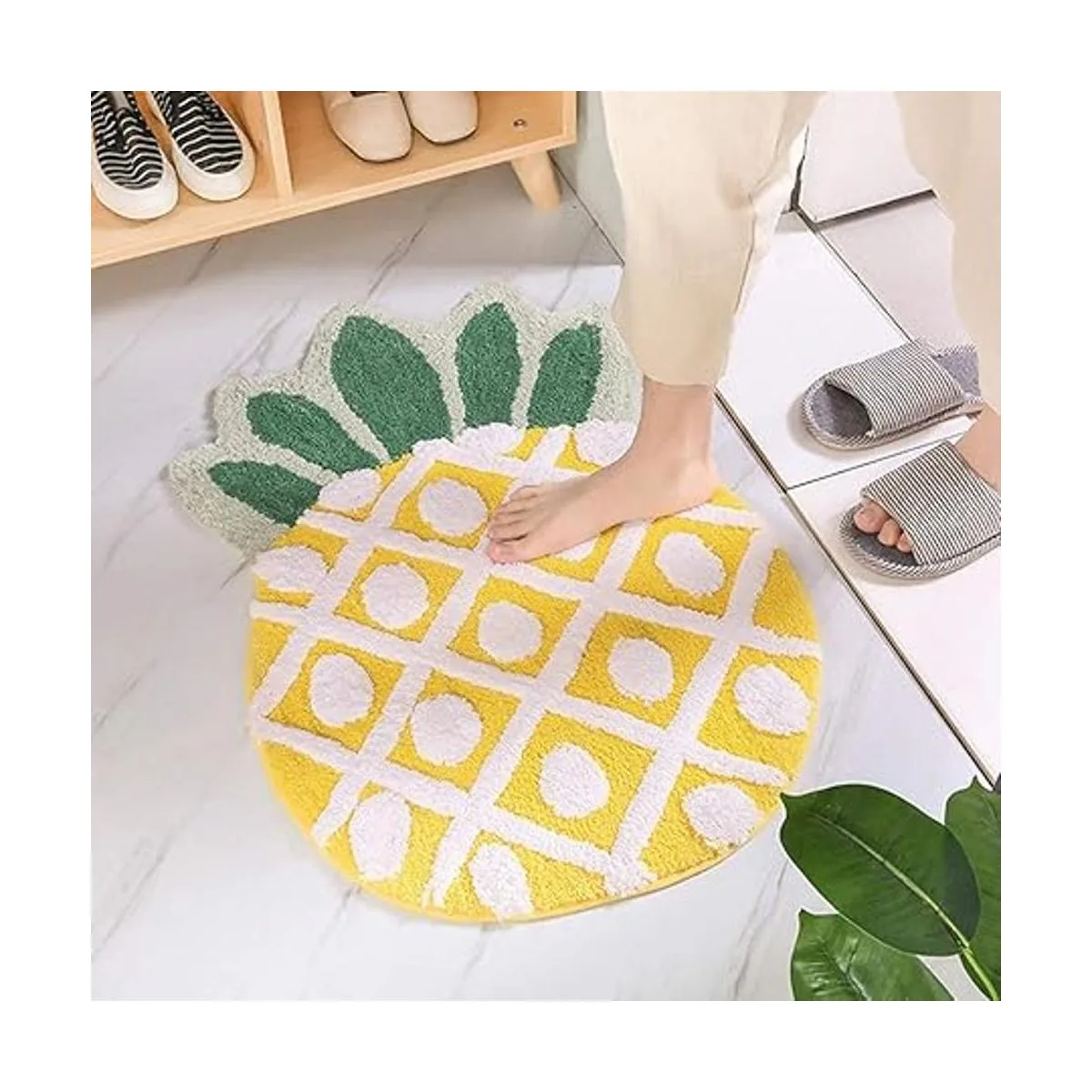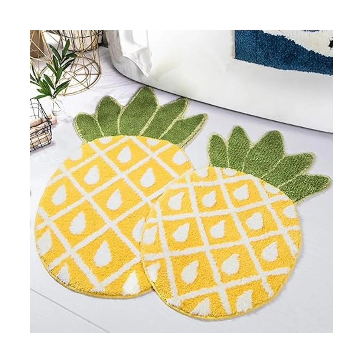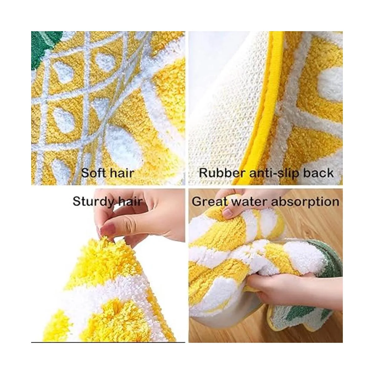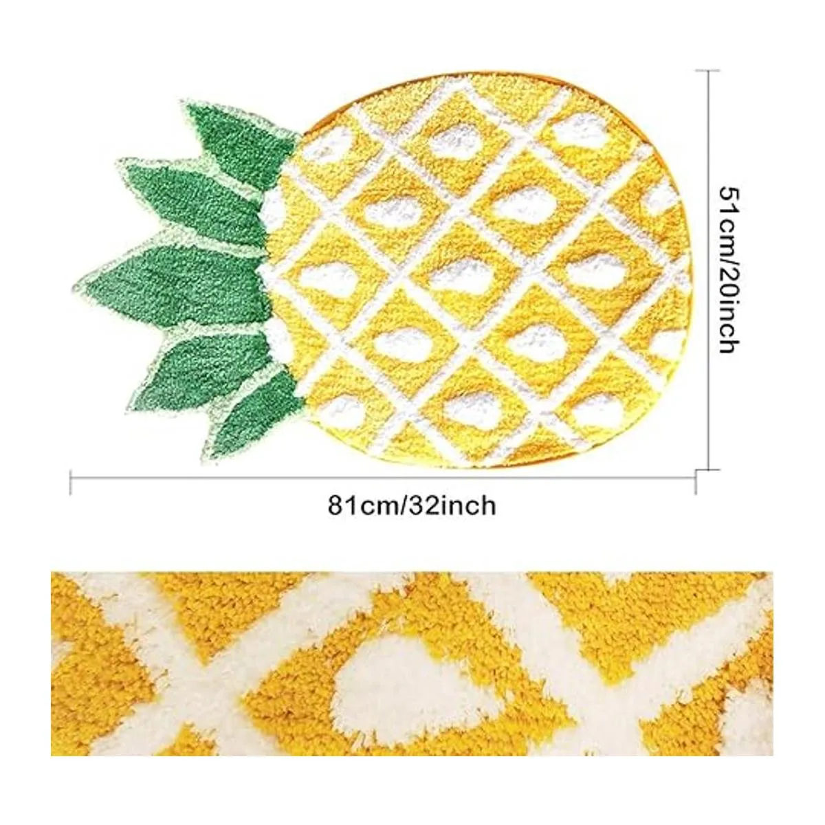 Súper suavidad: el tamaño de la alfombrilla con forma de piña es de 39.4 x 23.6 in. La superficie de material de microfibra 100 poliéster, suave, más gruesa, especialmente absorbente, manteniendo tu baño seco y ordenado durante todo el día. El material de felpa suave más grueso te hace sentir pisando en las nubes. Tú y tu familia tendrán una experiencia acogedora y esponjosa, cálida y suave.