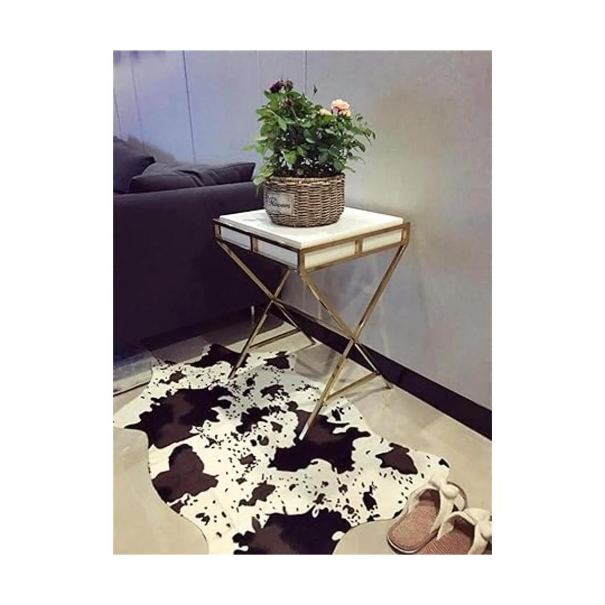 Esta alfombra con estampado animal es muy elegante y súper suave. Aunque no es una piel auténtica, hace que la habitación se vea fantástica