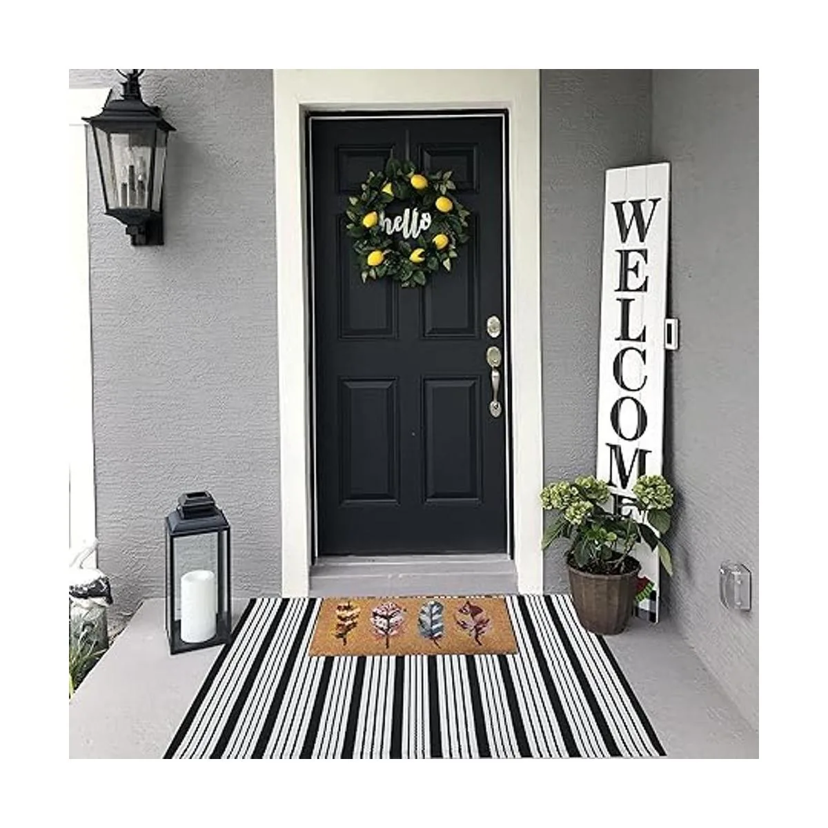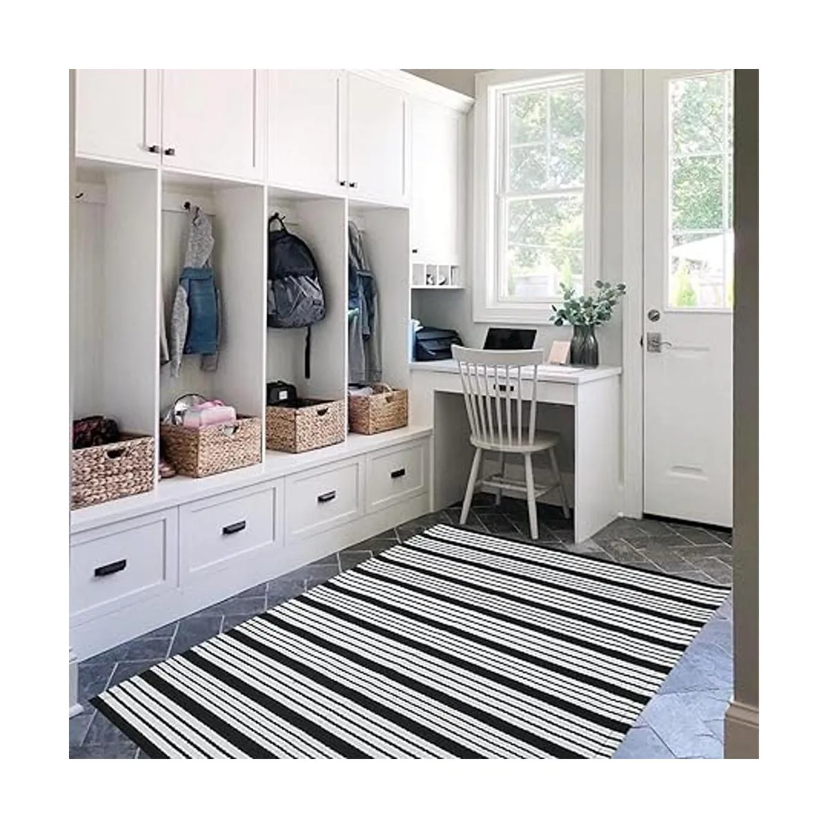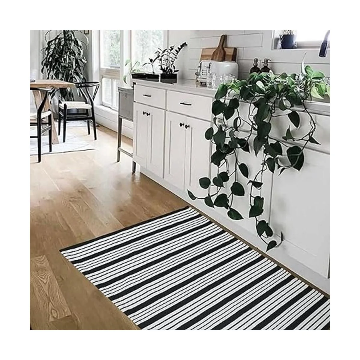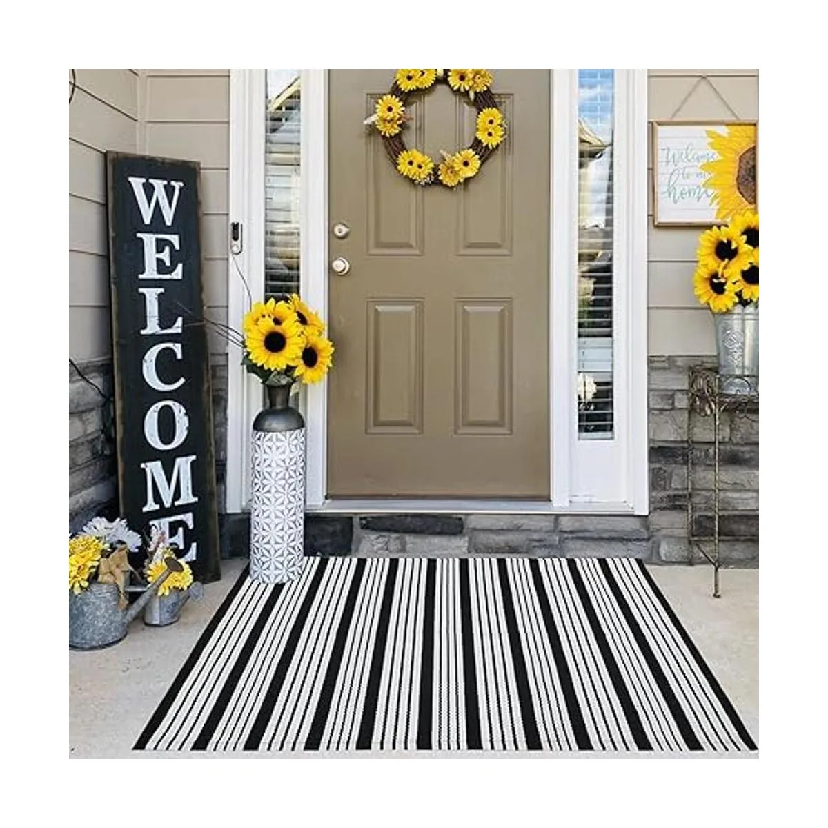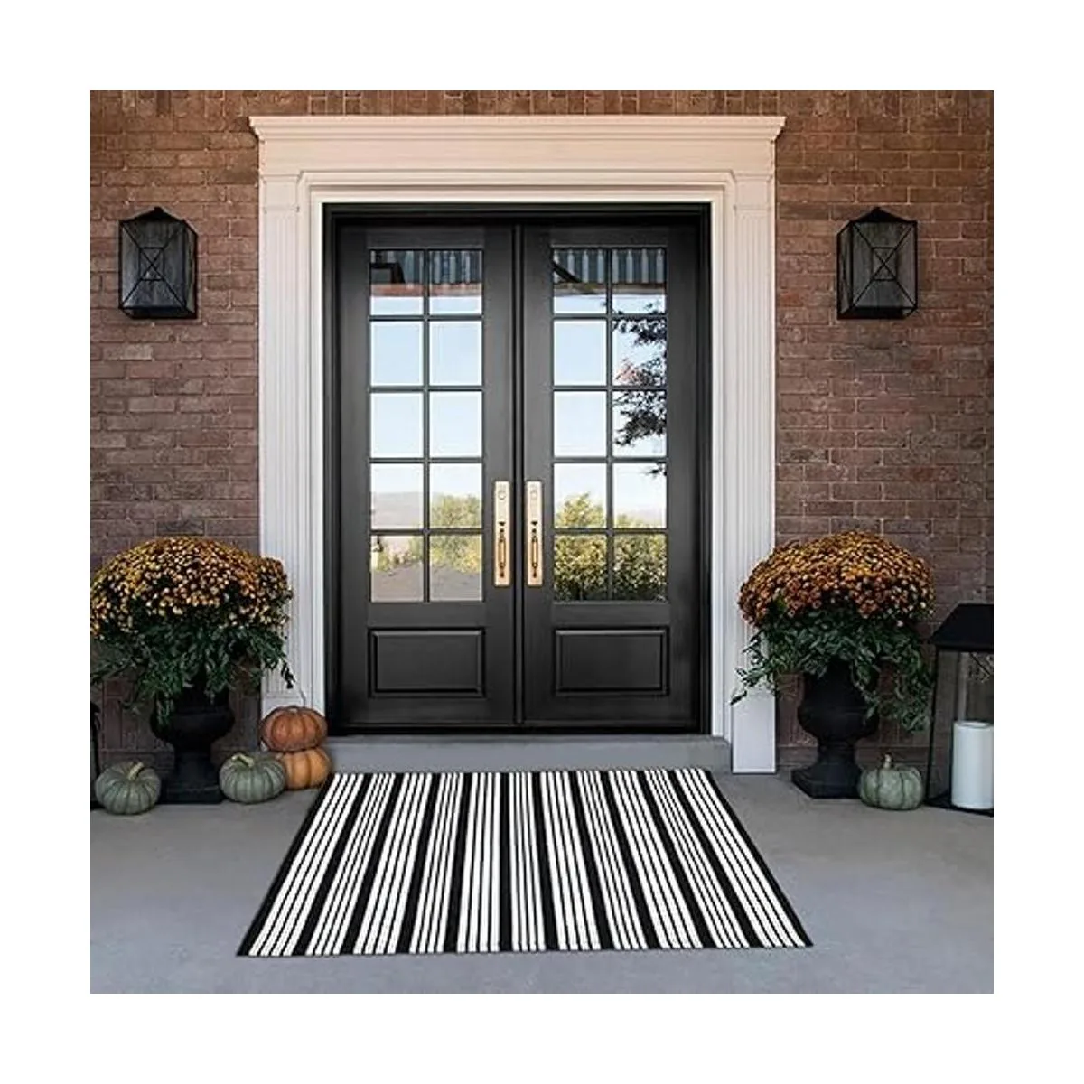 Alfombra de algodón a rayas blancas y negras de 27.5 x 43 pulgadas, reversible, plegable, lavable, para puertas en capas, porche, puerta delantera, entrada, lavandería, granja, cocina 27.5 x 43 pulgadas