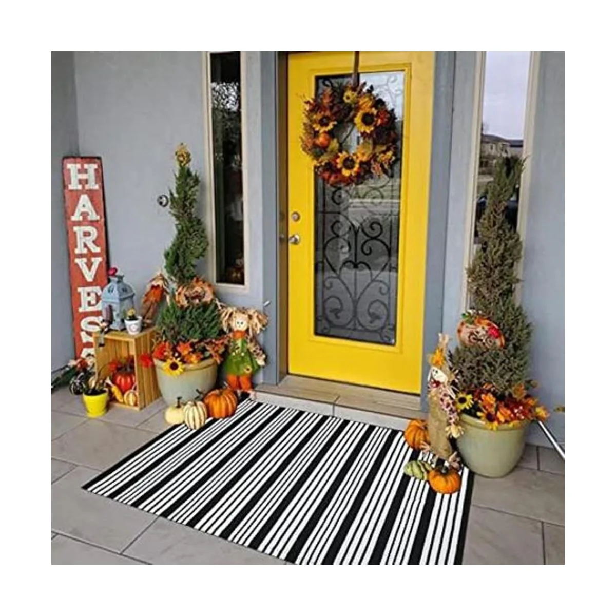 Regalo perfecto: nuestra alfombra de rayas blancas y negras se presenta en un hermoso embalaje que será perfecto para cualquier ocasión, inauguración de la casa, felpudo de Halloween, alfombra de Navidad al aire libre, felpudo de otoño, día de la madre, regalos de cumpleaños y mucho más