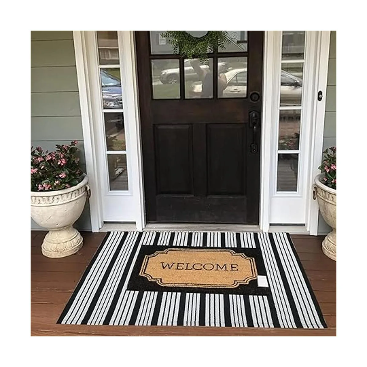 Perfecto para usar en capas: la alfombra de rayas blancas y negras de 27.5 x 43 pulgadas es específicamente para usar en capas de un felpudo o cualquier otro felpudo para crear tu divertida entrada de ensueño
