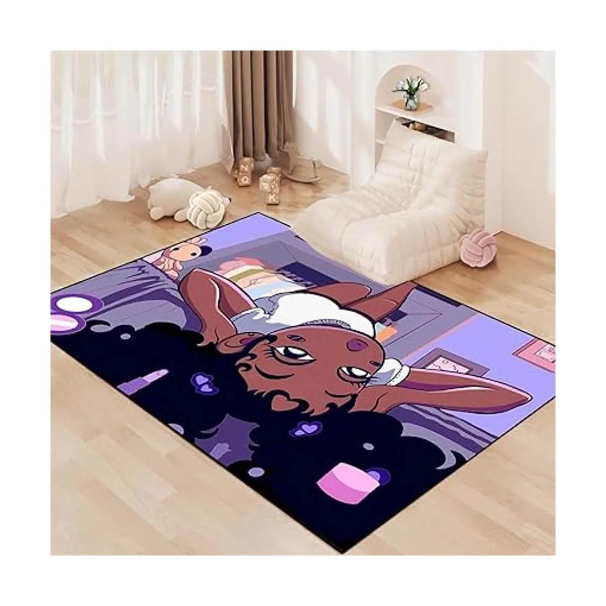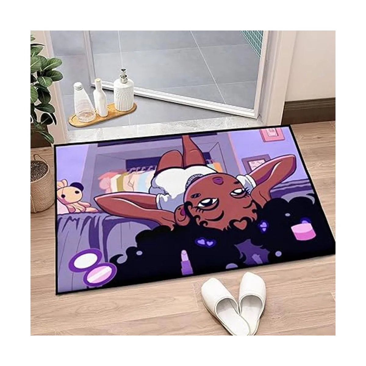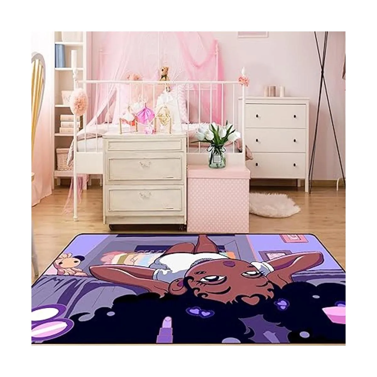 Alfombra de área negra para niñas, para dormitorio, sala de estar, sala de juegos, arte de dibujos animados, decoración del hogar, alfombras suaves y pequeñas, alfombras de yoga para mujer, color morado afro, 35 x 23 pulgadas 2 x 3 pies