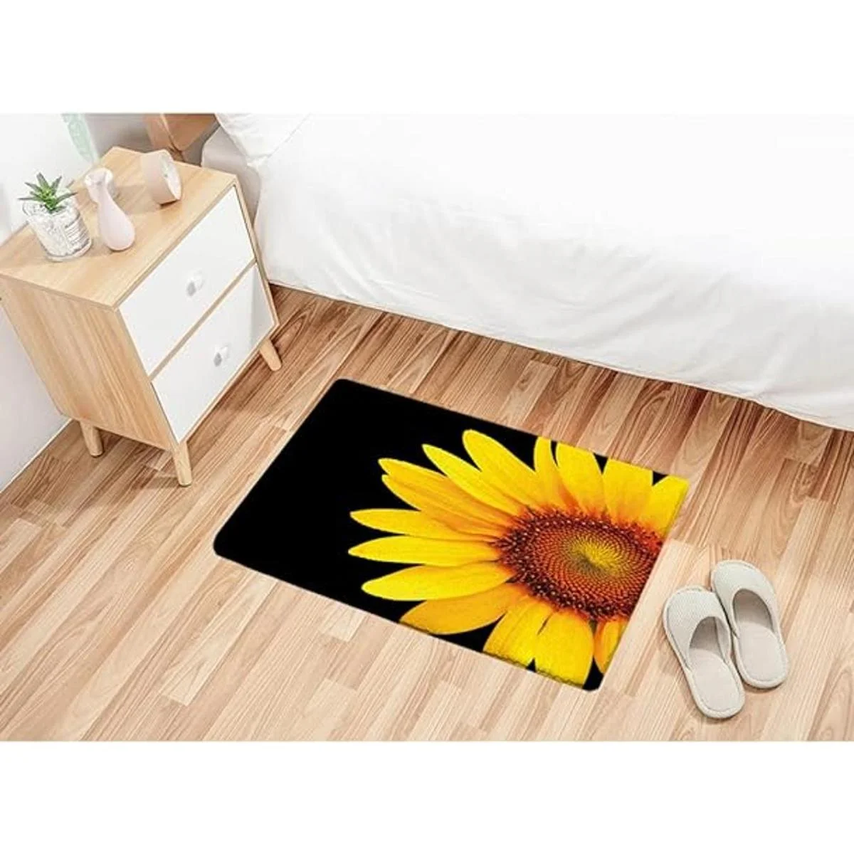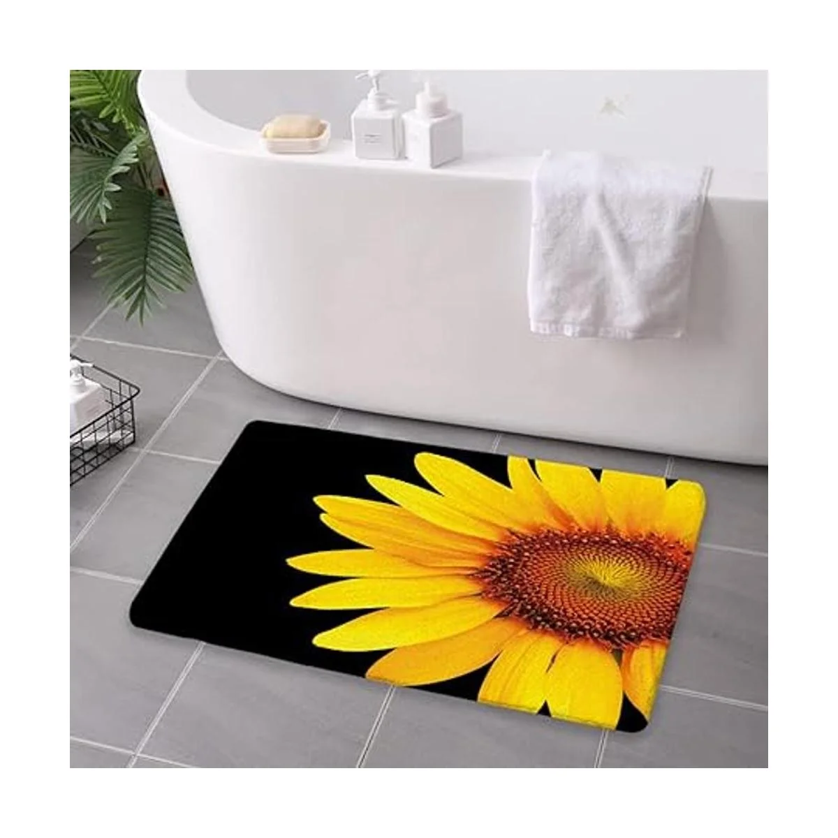 Alfombra de baño blanco y negro Geometries Mr and Mrs Sunflower Bear, alfombra antideslizante de espuma viscoelástica 31.4 pulgadas de largo x 19.6 pulgadas de ancho negro y amarillo