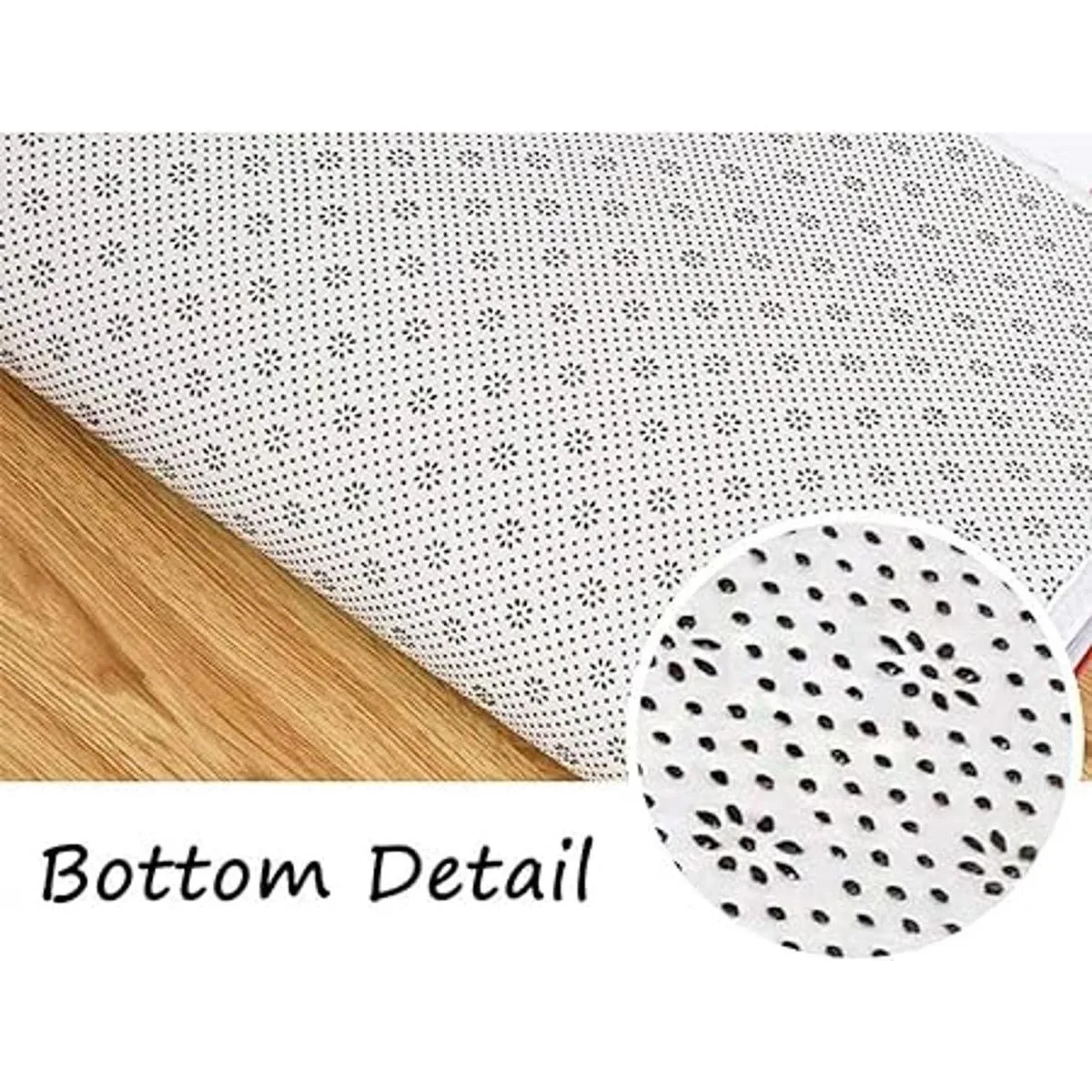Parte inferior: la parte inferior de la alfombra está hecha de partículas antideslizantes y el efecto antideslizante es mejor. La alfombra tiene buena permeabilidad al aire y no es moho. Ya sea suelos de madera o baldosas, el efecto antideslizante es igual de bueno y no daña el suelo.