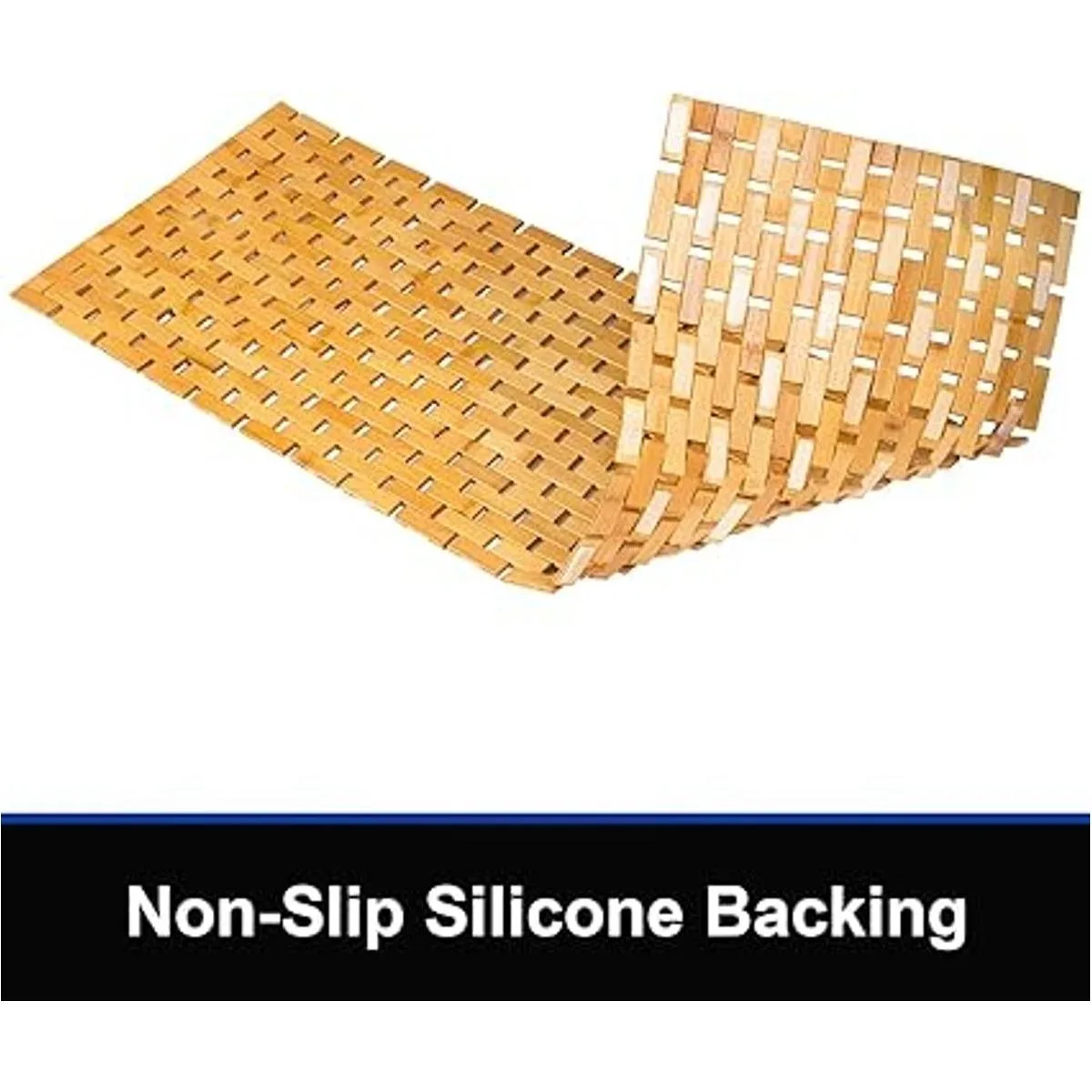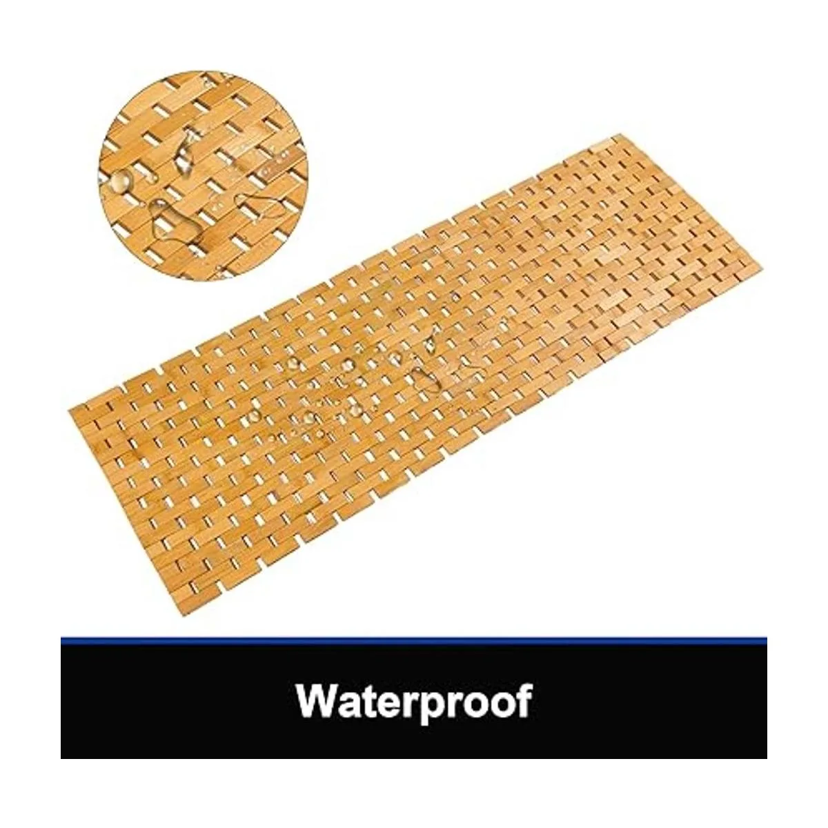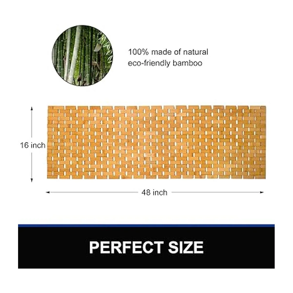 Alfombra de baño de bambú, alfombra larga y grande, impermeable, antideslizante, 16.0 x 48.3 in, fácil de limpiar, natural, 1 unidad