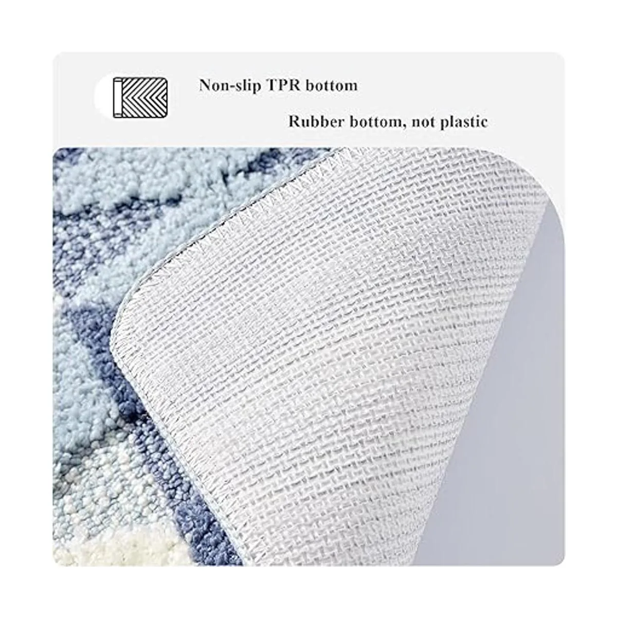 Alfombra de baño antideslizante de 32 x 47 pulgadas: la parte inferior de la alfombra de baño está hecha de TPR antideslizante que ayuda a mantener las alfombras de baño firmemente en su lugar. Atención: coloca la alfombra solo en suelos limpios y secos. El agua debajo de las alfombrillas de baño puede causar que se deslice. Mantén la parte inferior de la alfombrilla seca. Antes de usar la alfombra de baño, prueba con el pie para asegurarte de que no se mueva.