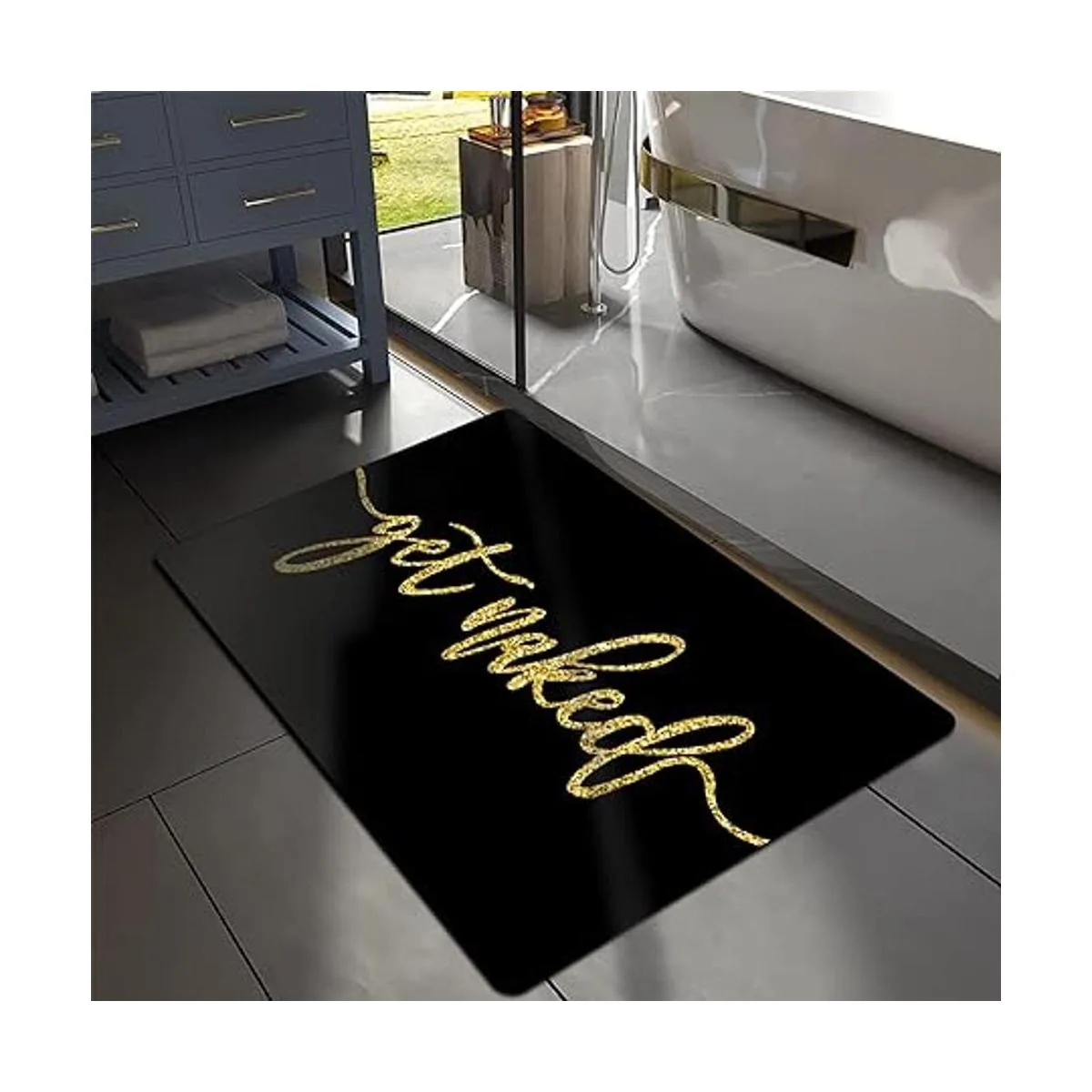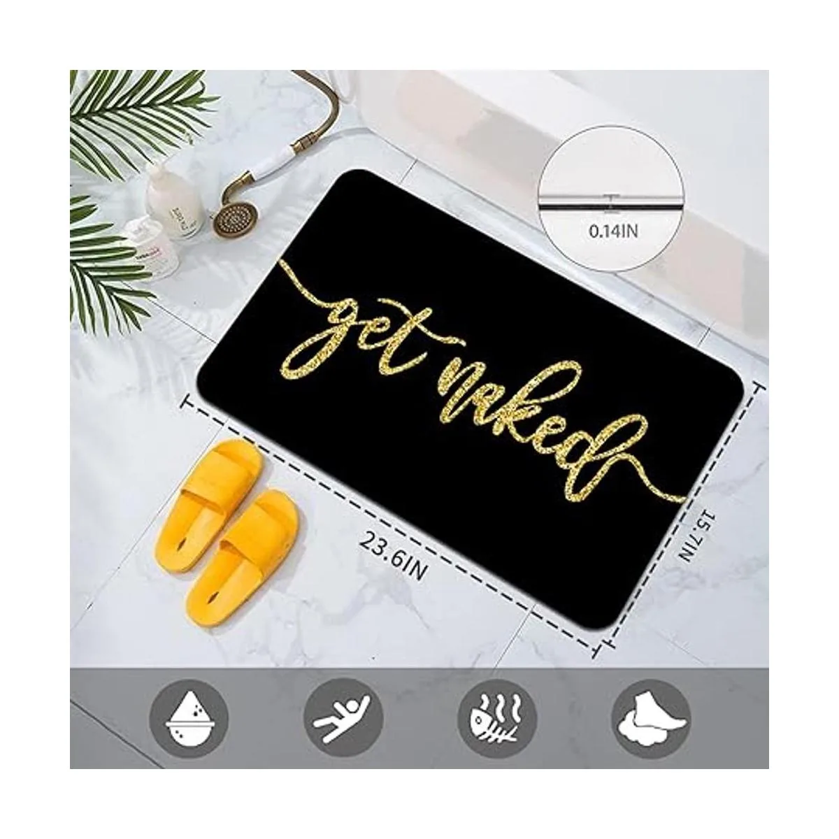 Tapete de baño fino Get Naked : esta pequeña alfombrilla de baño de mármol tiene letras blancas Get Naked. Añade un poco de humor a tu rutina diaria de baño. Divertido y elegante tapete de baño para decoración de tu baño.