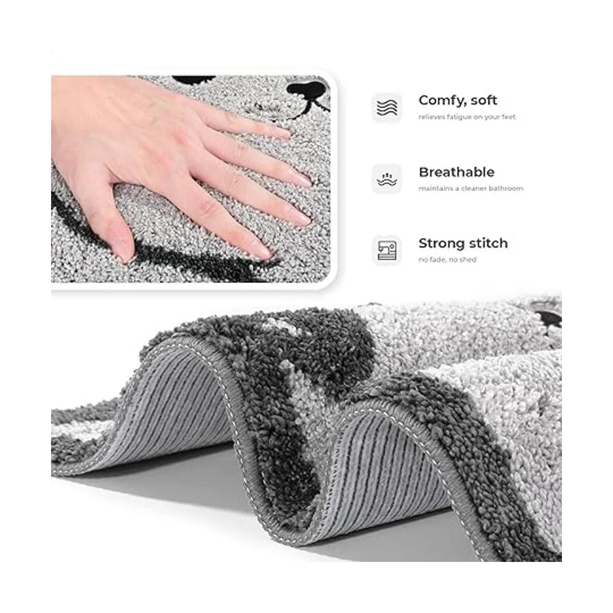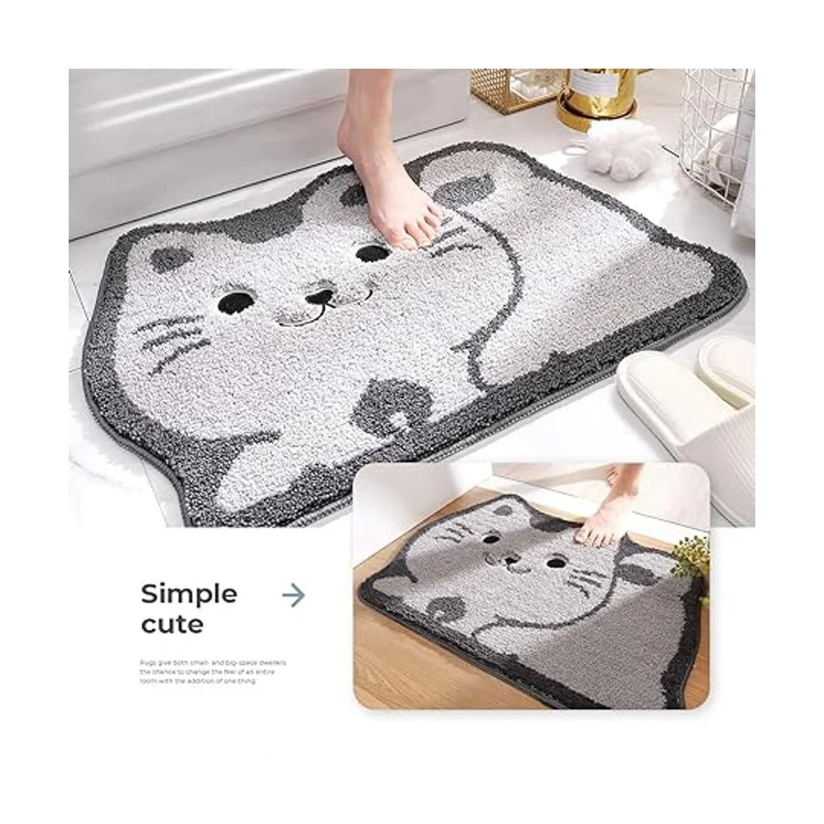 Súper absorbente: fabricada con materiales de microfibra de alta calidad, esta bonita alfombra de baño puede absorber 5 veces de agua en pocos segundos para secar tus pies rápidamente y hacer que los suelos de tu baño estén secos y limpios.
