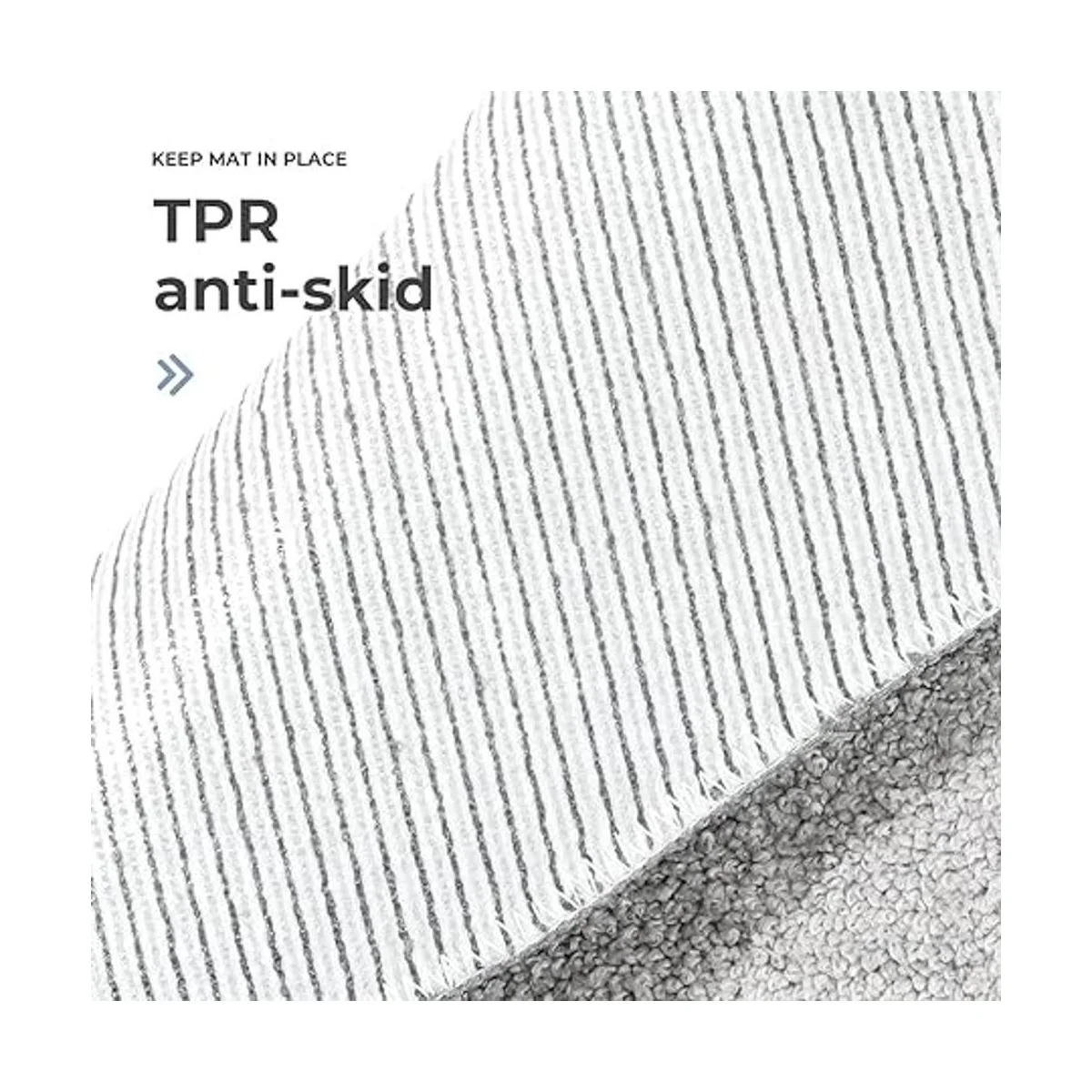 Parte trasera antideslizante: parte trasera de TPR, fuerte adherencia que se agarra de forma fiable al suelo y mantiene la alfombra en el lugar deseado, protegiendo la seguridad de tu familia incluso si hay agua en el suelo.
