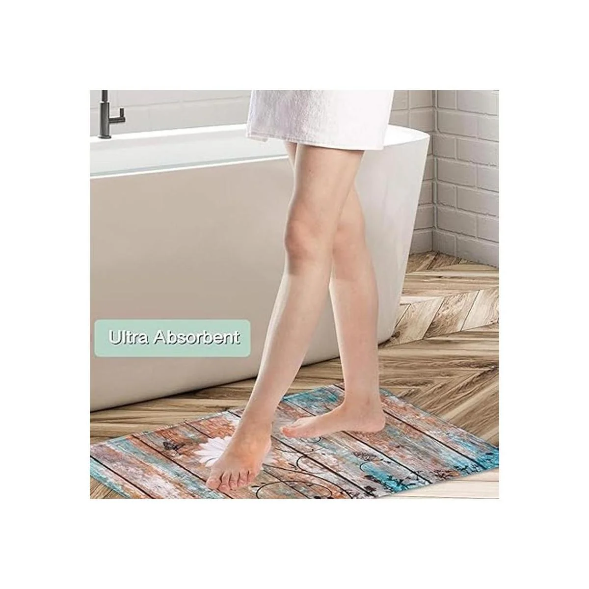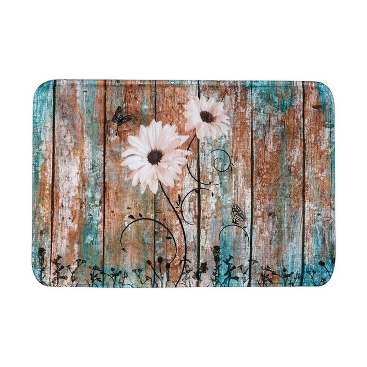 Alfombra de baño, súper suave y absorbente, alfombra de baño con flores peludas, gruesa, antideslizante, lavar y secar a máquina, alfombra para ducha, madera rústica y flores blancas, 24 x 16 pulgadas