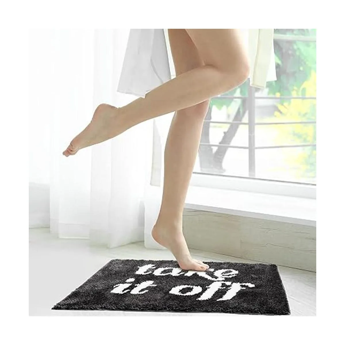 Alfombra de baño Take It Off, bonita alfombra de baño de microfibra divertida alfombra de baño para ducha, antideslizante, para decoración del hogar, alfombra súper absorbente, lavable a máquina, 20 x 31.5 pulgadas, gris oscuro