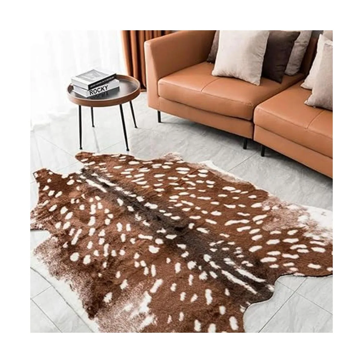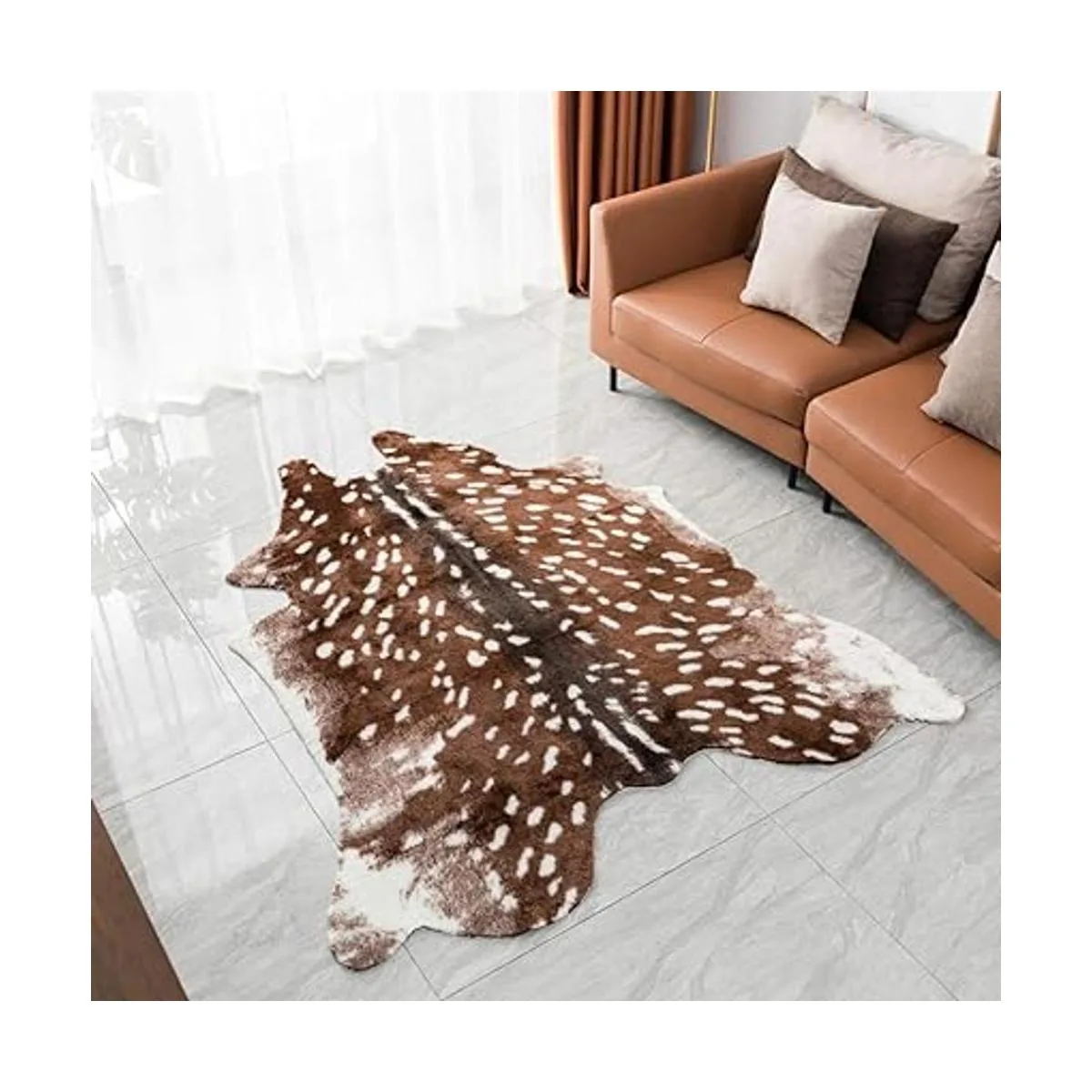 Alfombra de cuero de vacuno sintético, alfombra de animales con estampado de ciervos, alfombra de piel de vaca sintética, alfombra de animales de ciervo sika para el hogar, sala de estar 5 x 6 pies