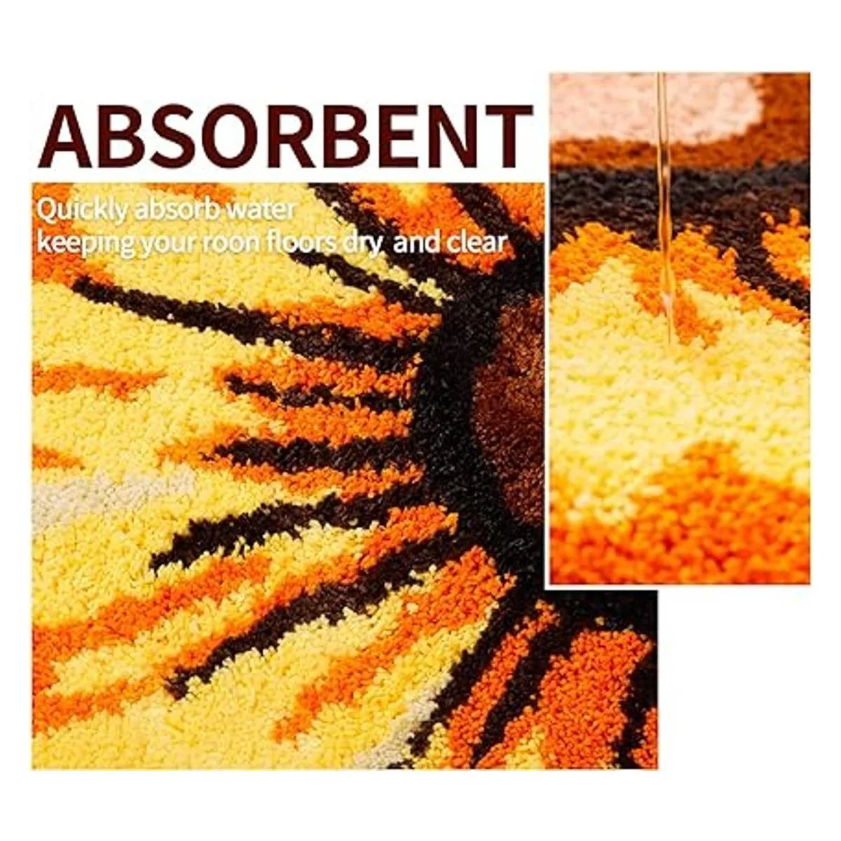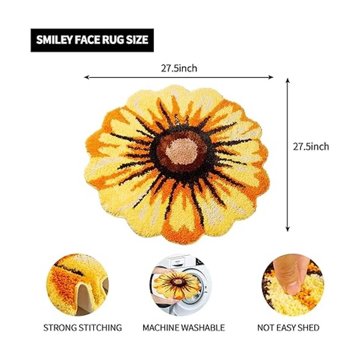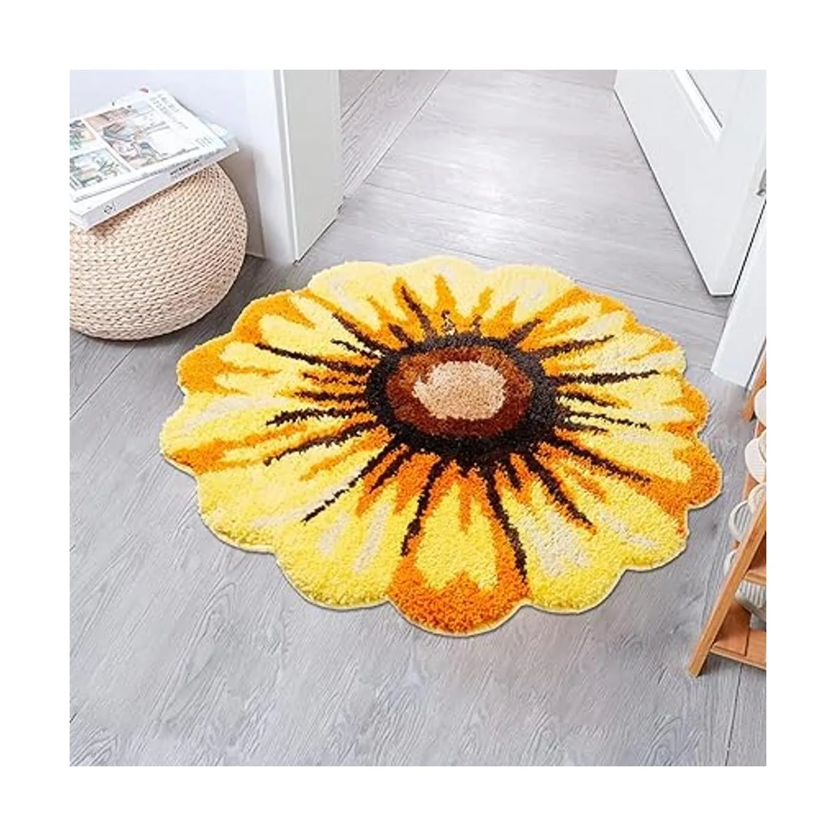 Material cómodo: la alfombrilla de girasol está hecha de material de microfibra de poliéster. Nuestra alfombra con forma de flor mide 27.6 x 27.6 pulgadas.