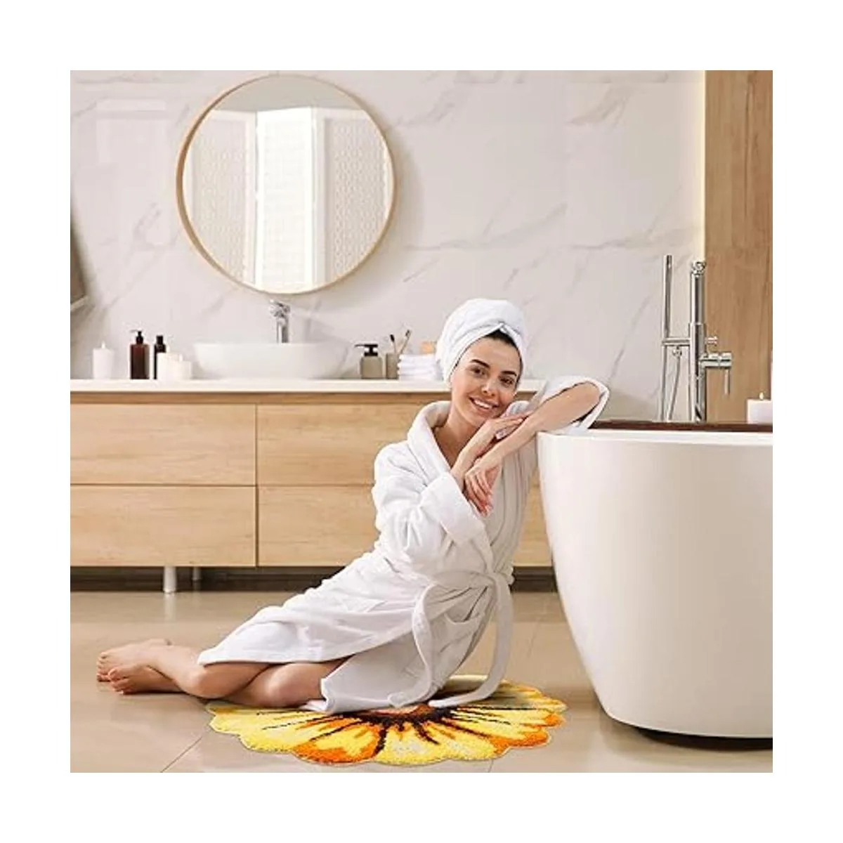 Alfombra de girasol de 27.6 pulgadas, bonita forma de flor, antideslizante, absorbente, alfombra de baño, alfombra de felpa para dormitorio, sala de estar amarillo