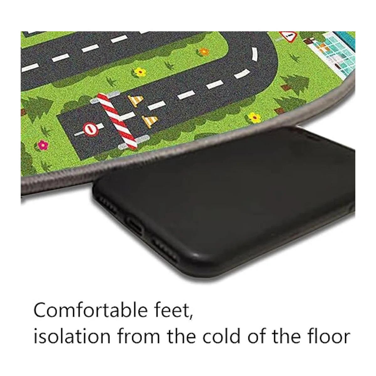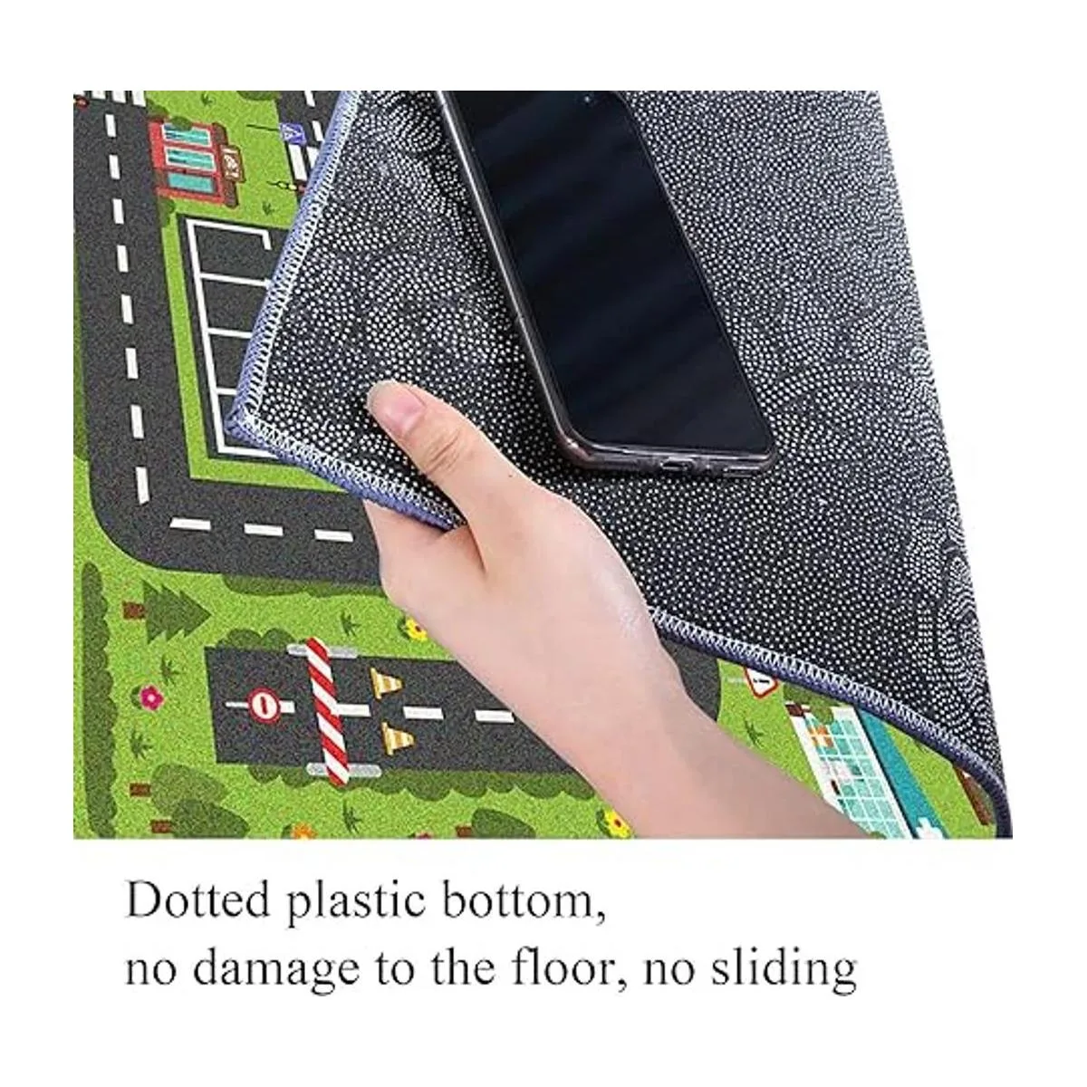 Parte trasera antideslizante: Te preocupa que tu hijo se resbale mientras corre en la alfombra Ahora ya no tienes que preocuparte más, ya que nuestra gruesa alfombra de carretera para niños cuenta con una parte trasera de látex antideslizante, que ayudará a prevenir accidentes y mantener tu alfombra de juego de camión en su lugar de forma segura