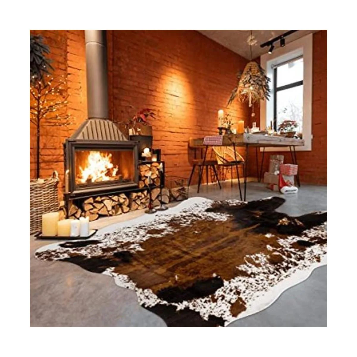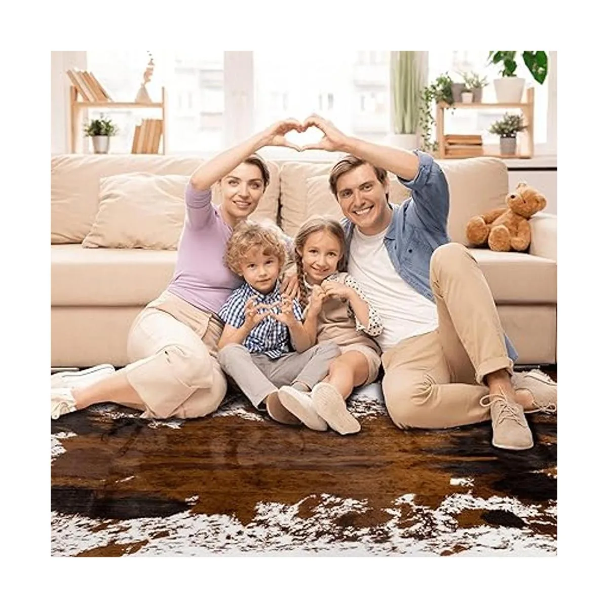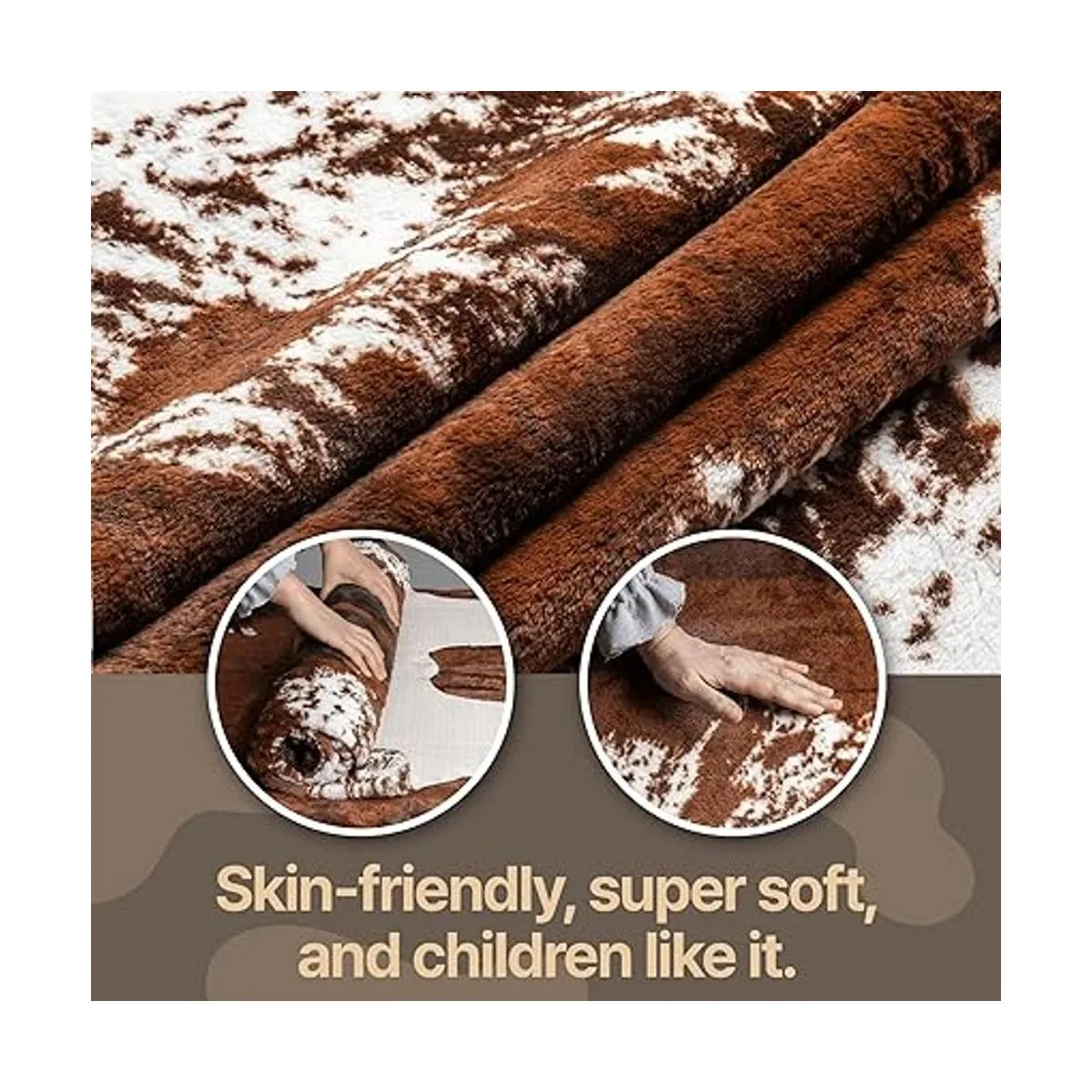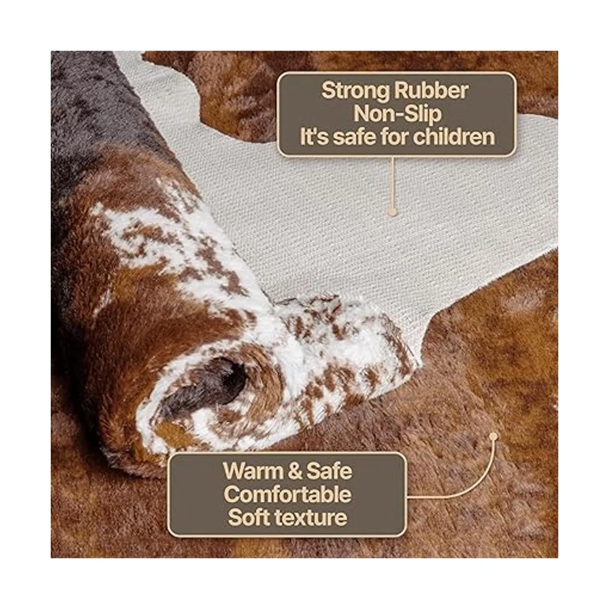 Alfombra de piel de vaca sintética suave grande 4.6 x 6.6 pies Alfombra de piel sintética sin crueldad animal, decoración con estampado de vaca, alfombra antideslizante granja, alfombras de piso occidental para sala de estar, dormitorio, comedor u oficina