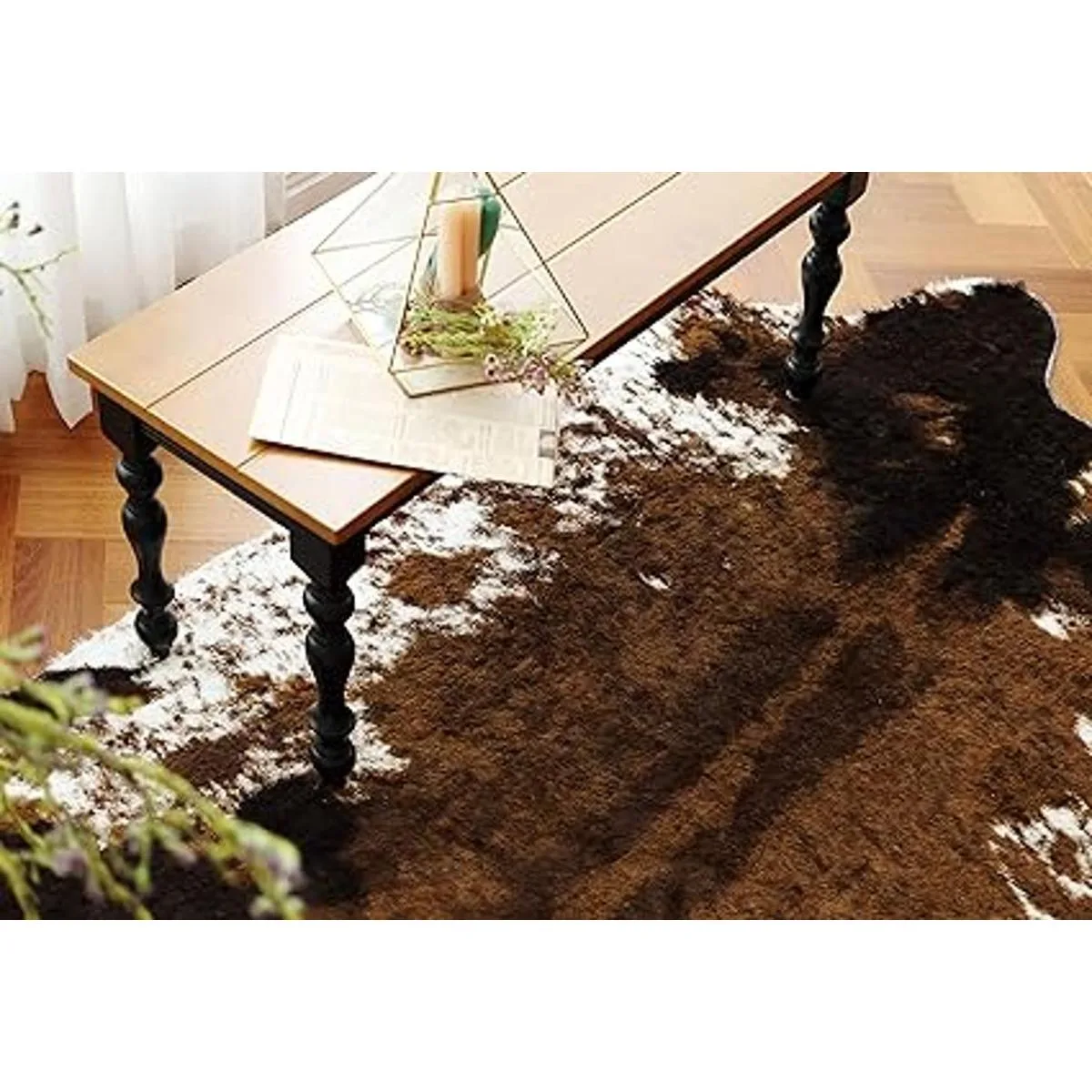 Un toque rústico y occidental: esta alfombra de piel de vaca sintética hace alarde de tonos blancos y marrones caseros que ofrecen a tu hogar un ambiente cálido de granja y campo, ideal para la sala de estar, dormitorio o comedor.