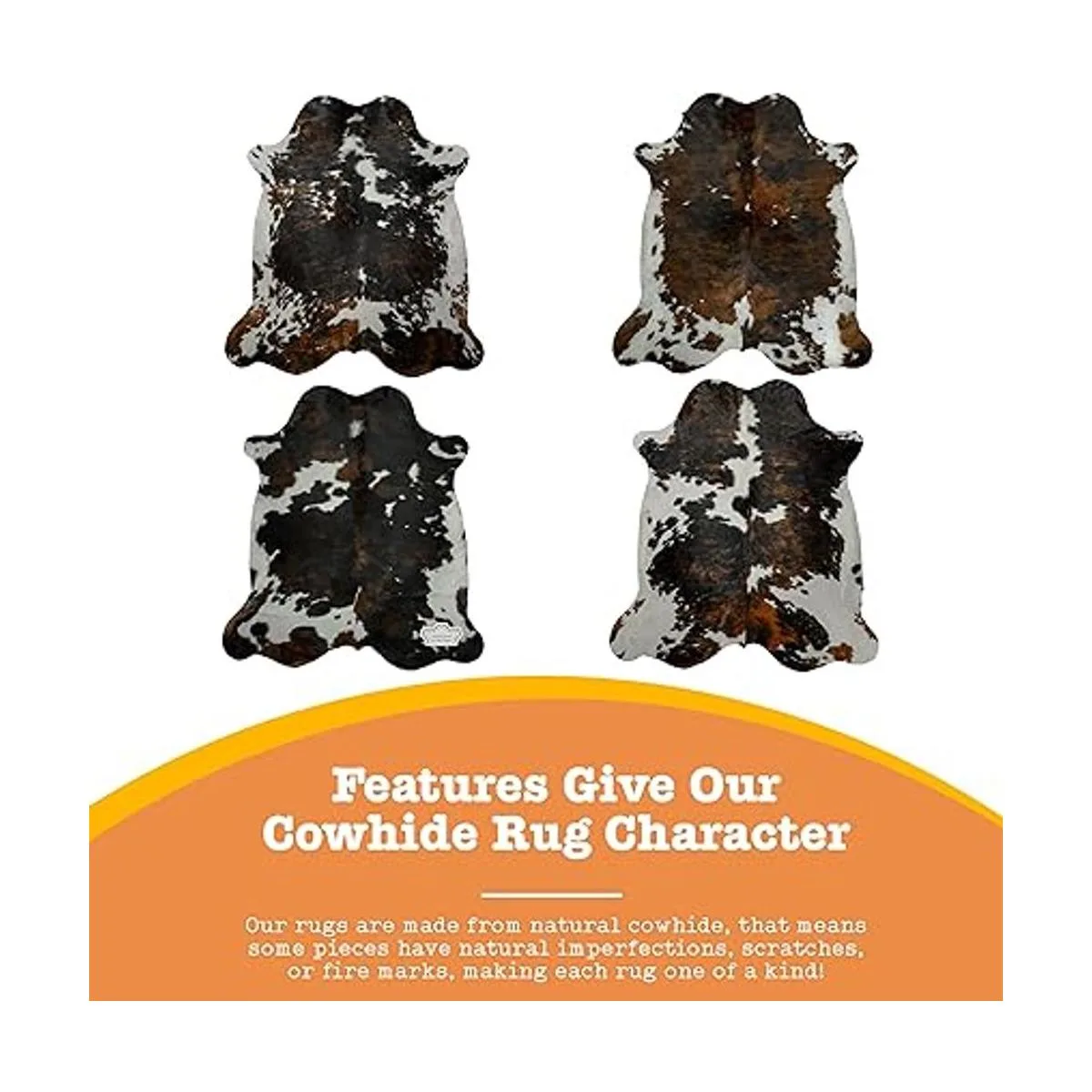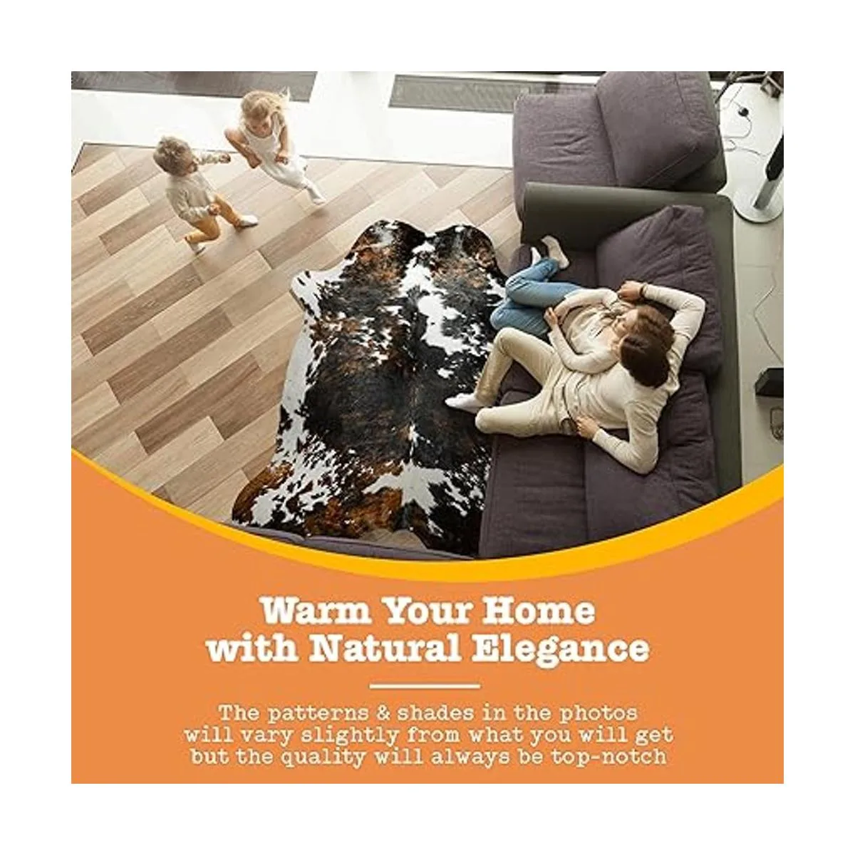 Alfombra de piel de vaca tricolor natural oscuro 6 x 7 pies