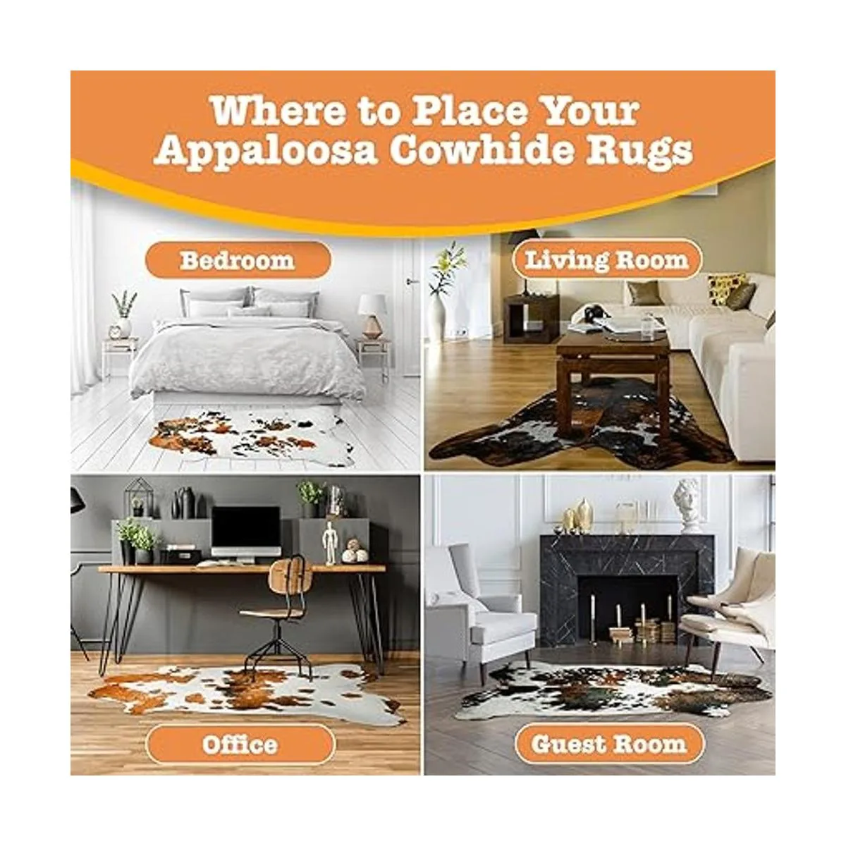 Los patrones y tonos de la alfombra de cuero vacuno que recibirás pueden diferir ligeramente de los que se muestran arriba.