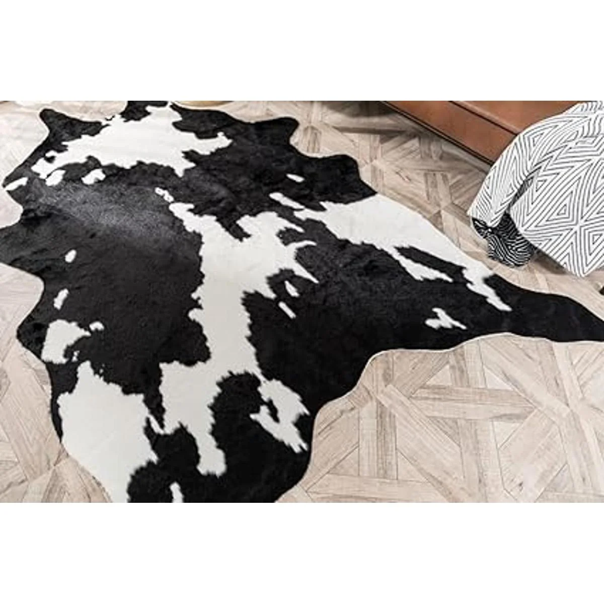 Alfombra de piel sintética con estampado de vaca en blanco y negro y negro, alfombra de piel de vaca sintética, alfombra impresa con animales, para el hogar, 62.2 x 86.6 pulgadas, 5.2 x 7.2 pies