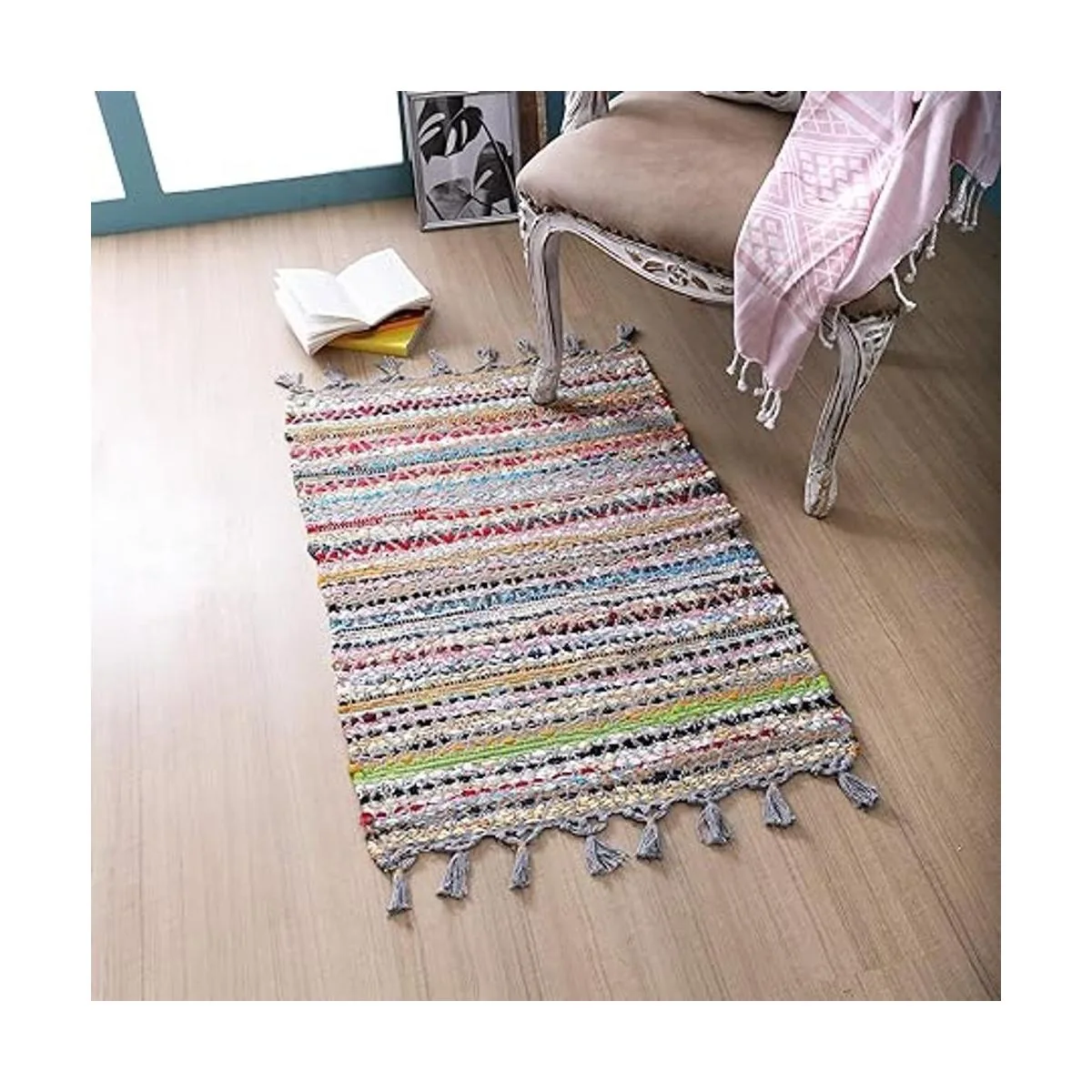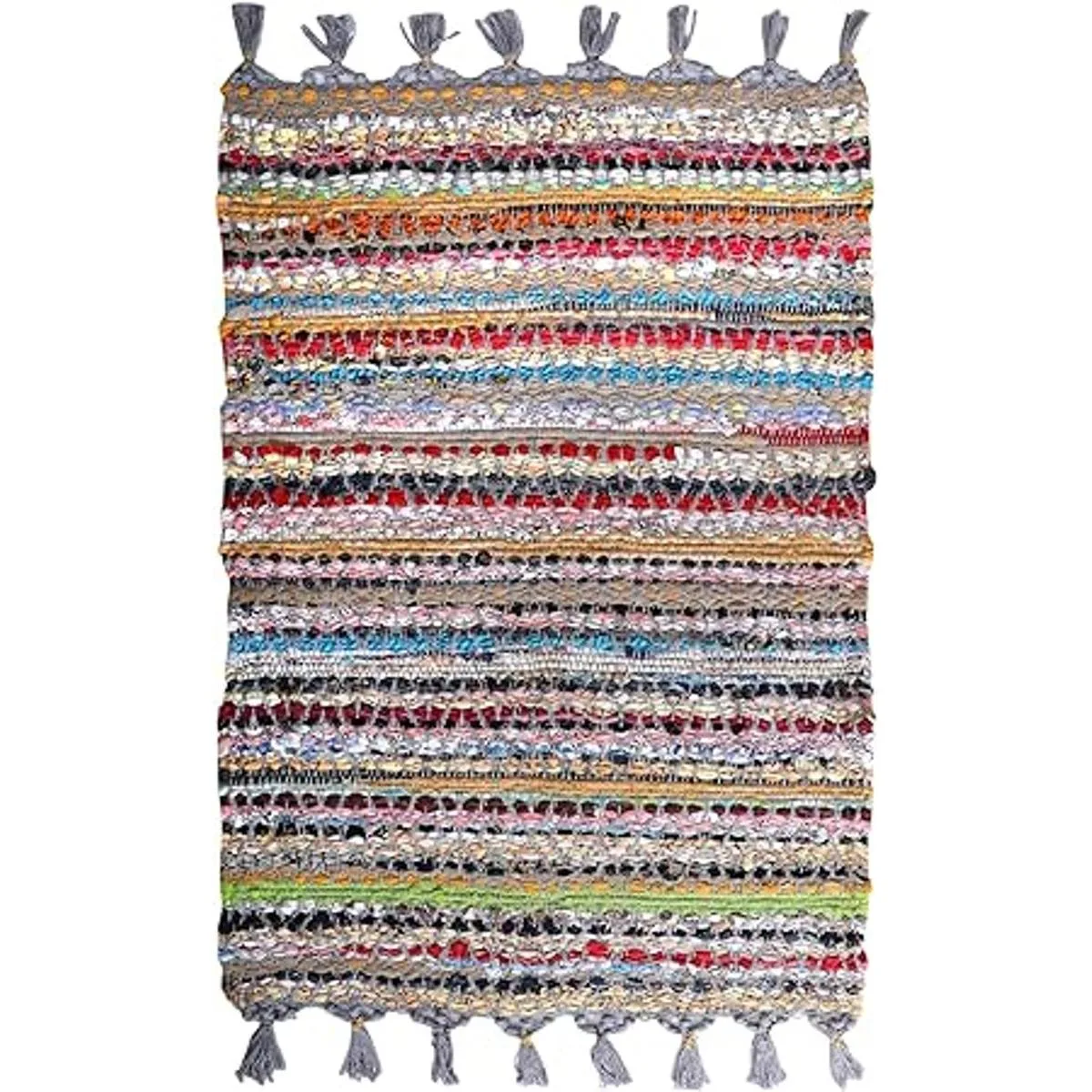 Alfombra de trapo 100 algodón de 24 x 36 pulgadas, alfombra chindi multicolor, tejida a mano y reversible para sala de estar, cocina, entrada, multicolor