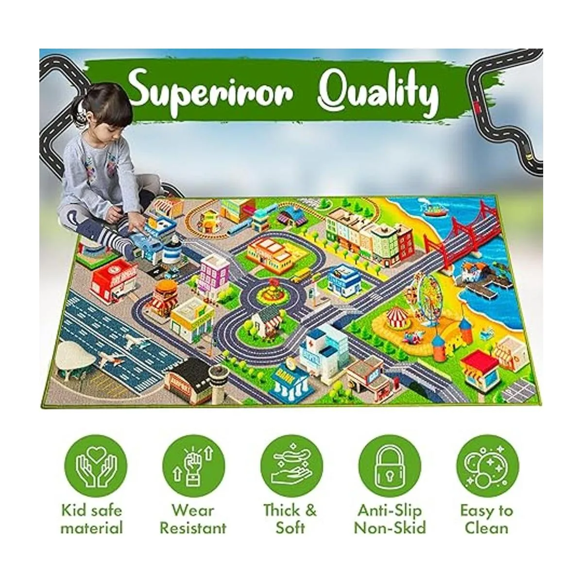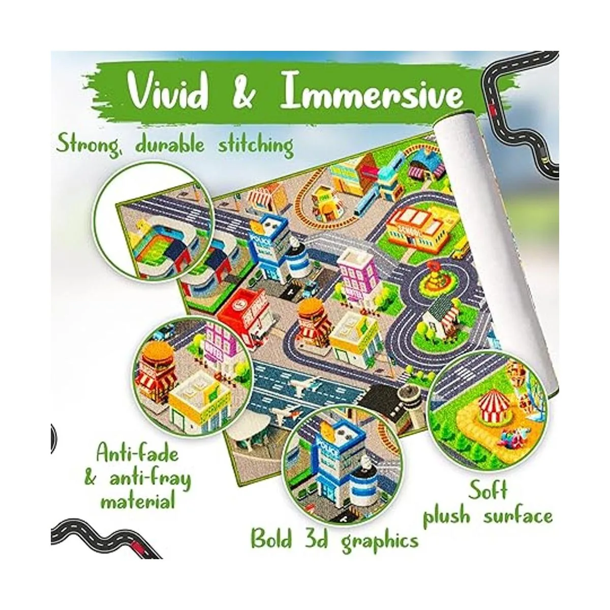 Los niños estarán entretenidos durante horas: esta alfombra de juego City Life es una gran salida para jugar divertido y imaginativo. Tiene impresionantes gráficos 3D coloridos que los niños aman. Pueden utilizar coches y otros juguetes para jugar en él.