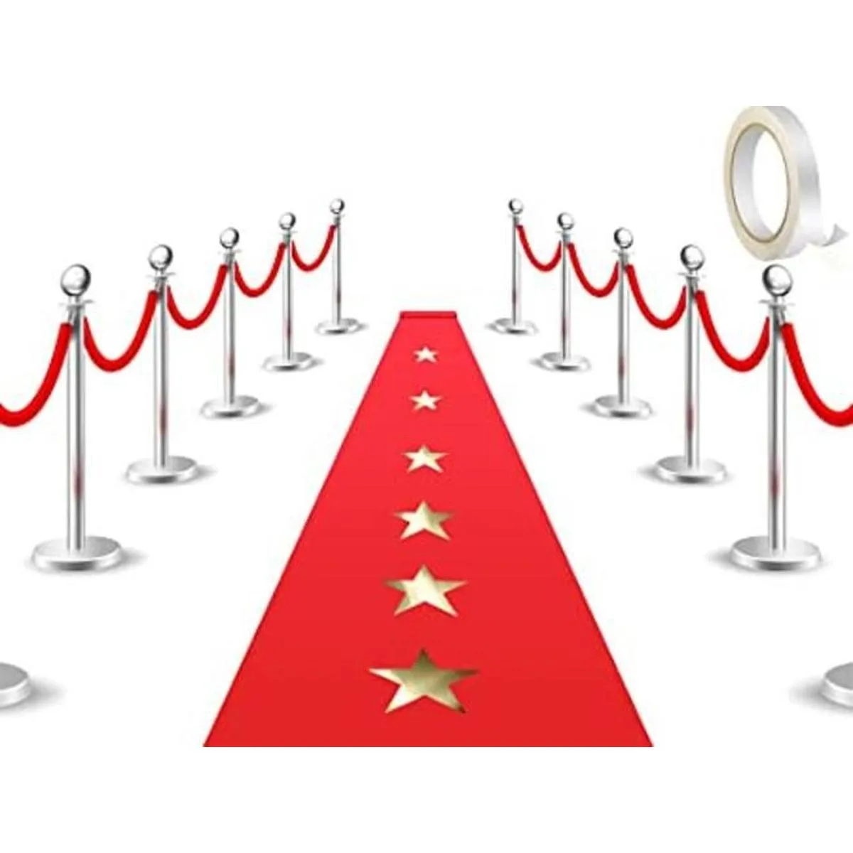 Alfombra roja con cinta adhesiva para alfombra, decoración de fiesta, 20 piezas de recortes de estrellas doradas de 10 pulgadas para decoración de bodas, interiores y exteriores 2.6 x 16.4 pies