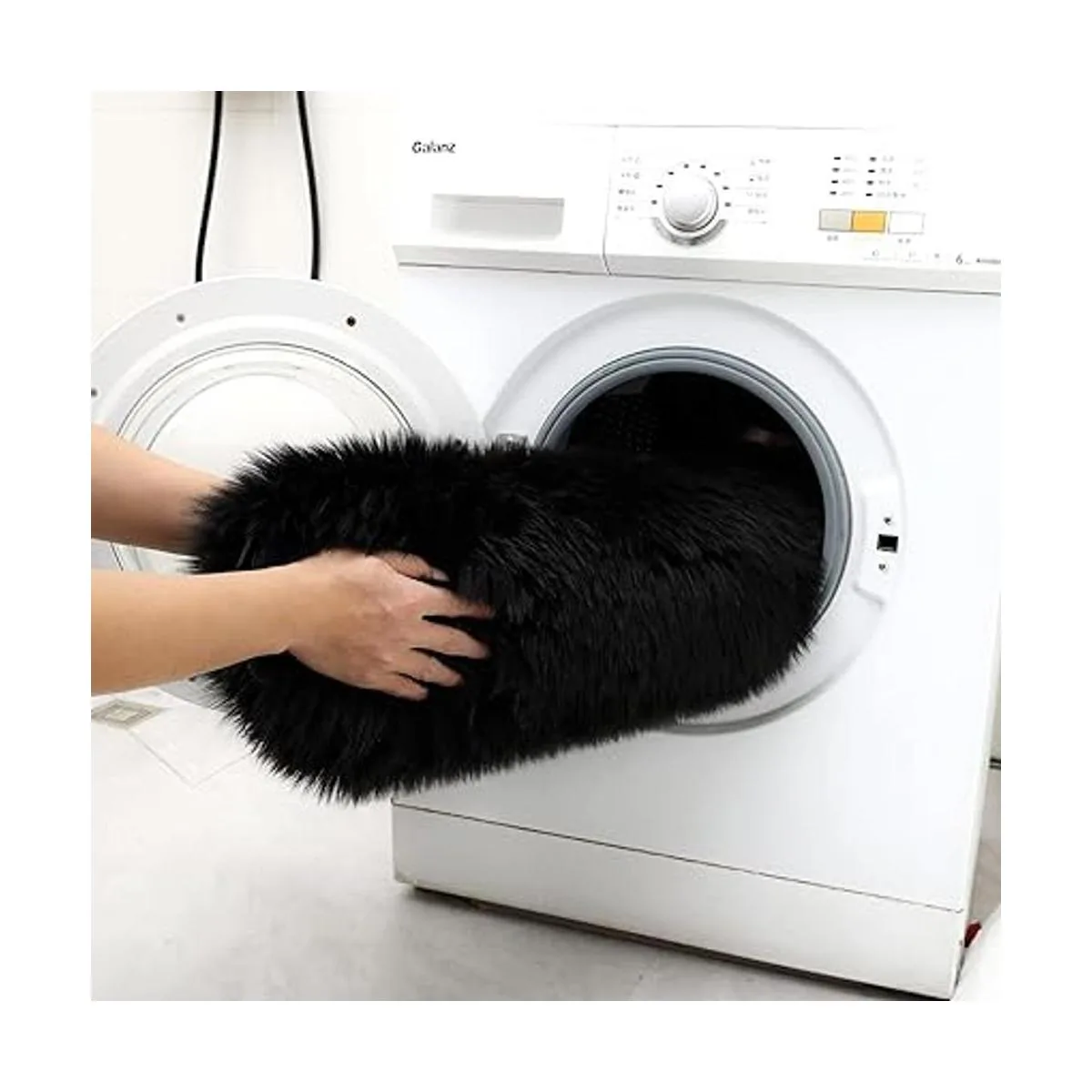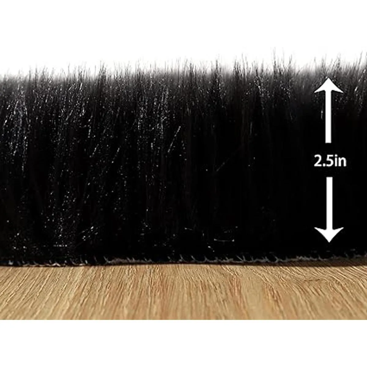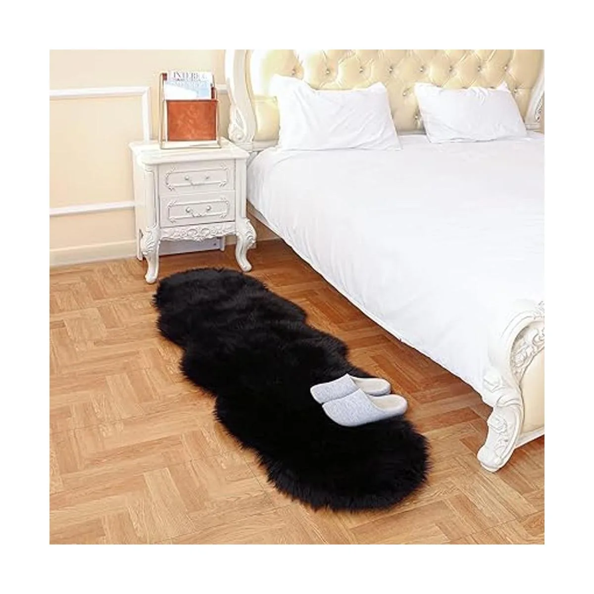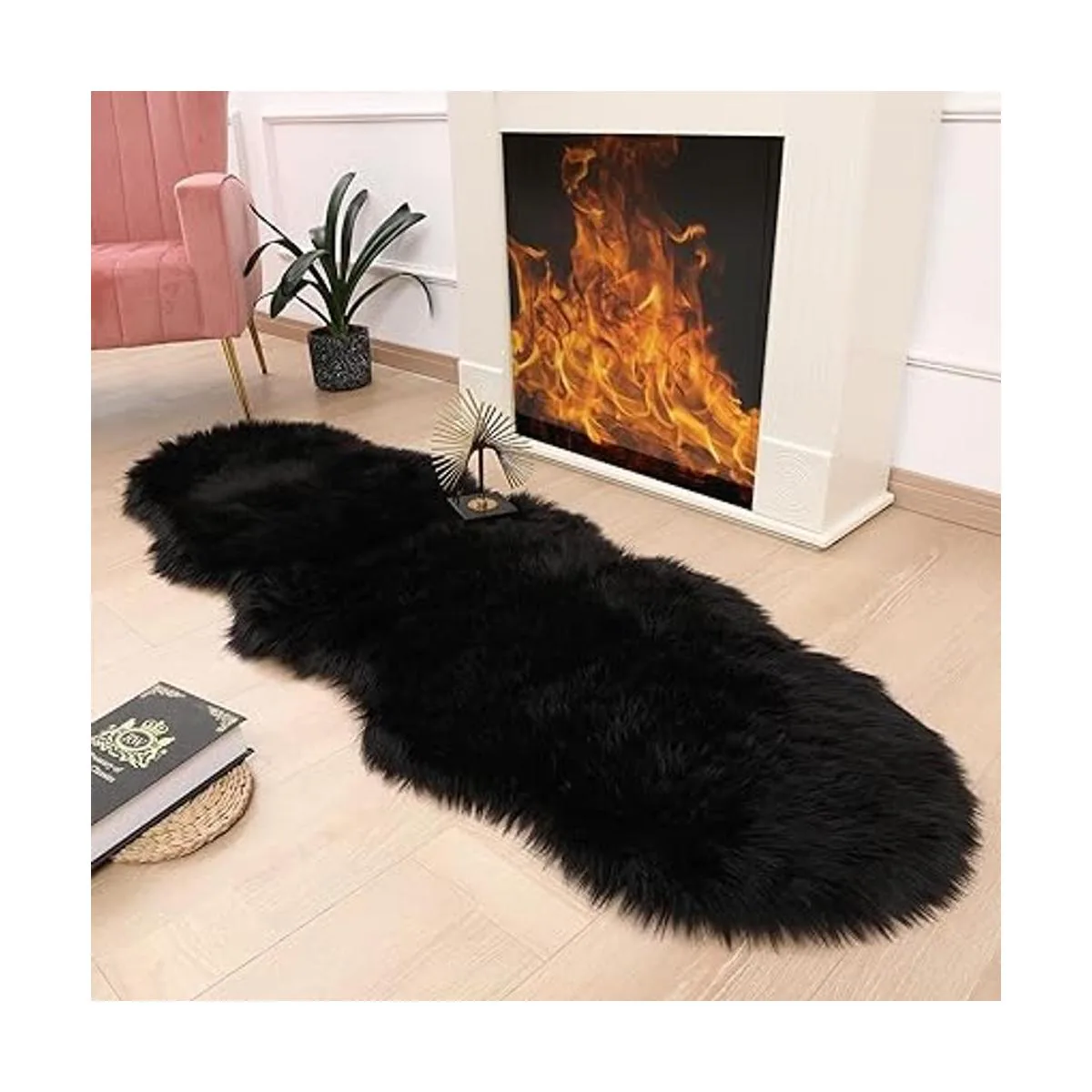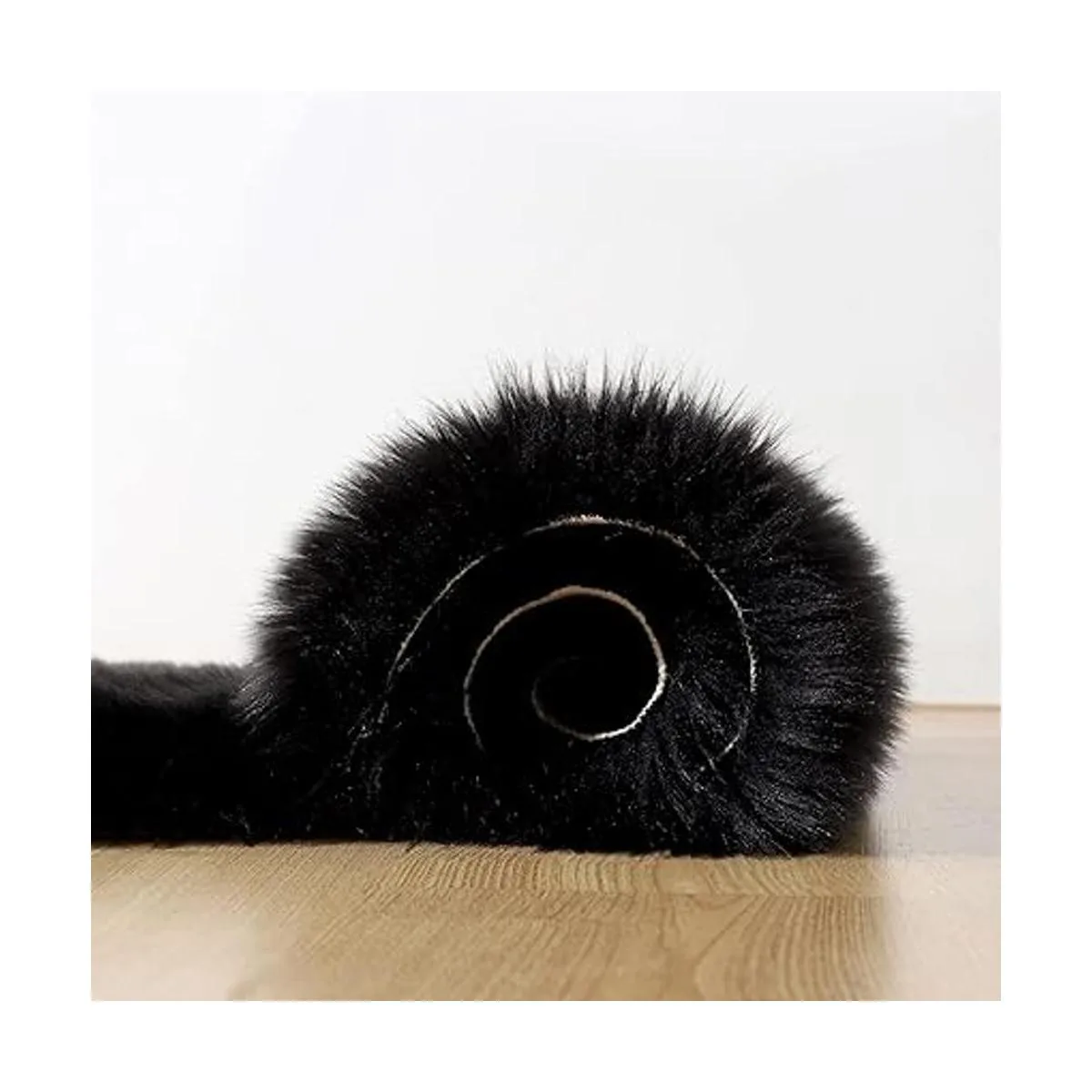 Alfombra súper suave y esponjosa de lujo de piel sintética de oveja, alfombra decorativa para el hogar, dormitorio, sala de estar, sofá, funda para asiento, mesita de noche, alfombra mullida de 2 x 6 pies forma de piel de oveja, negro CKLZSAY
