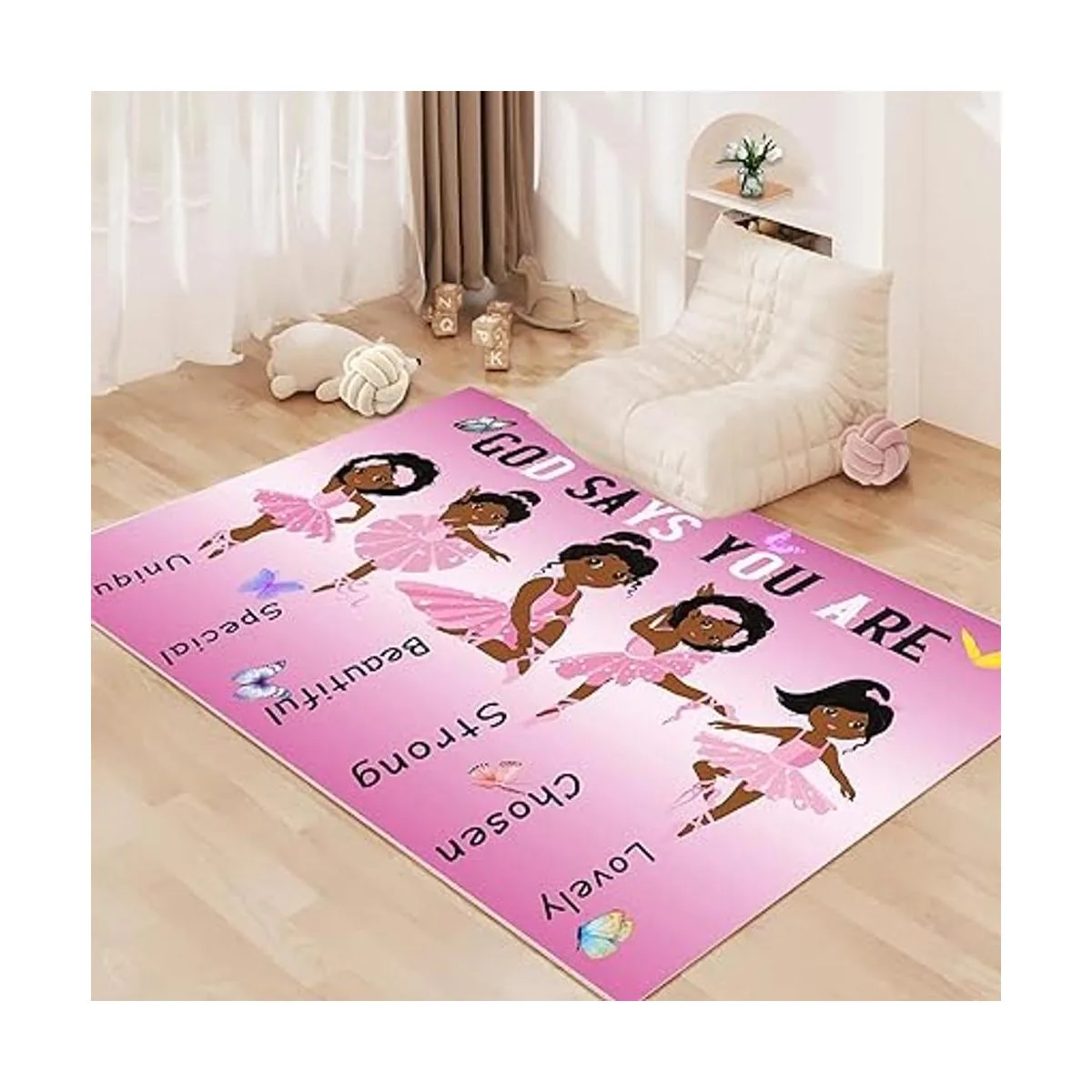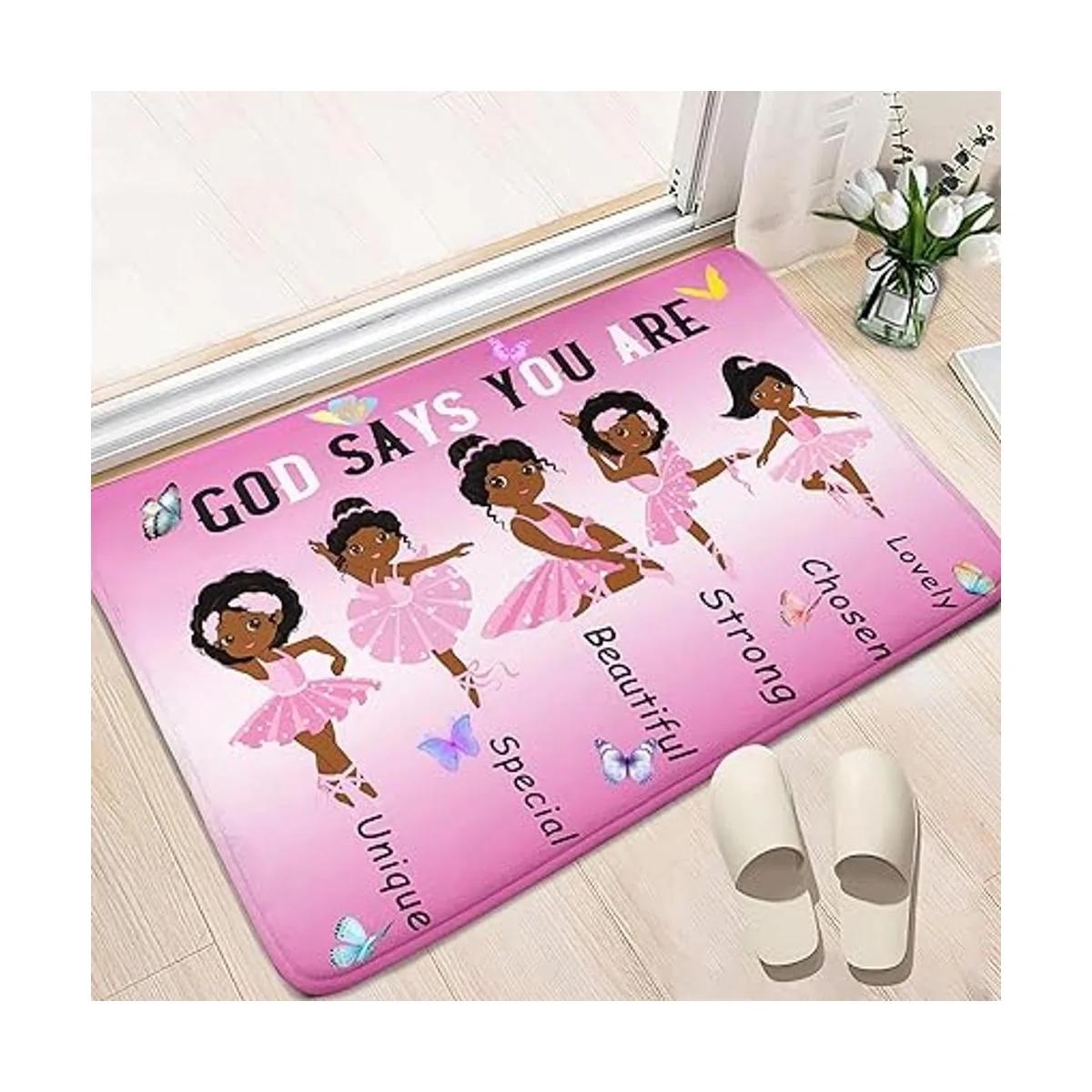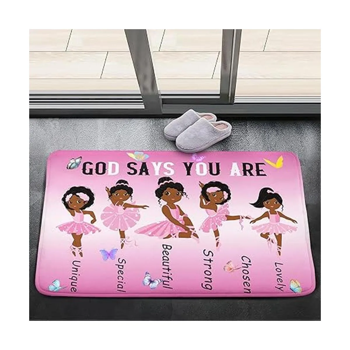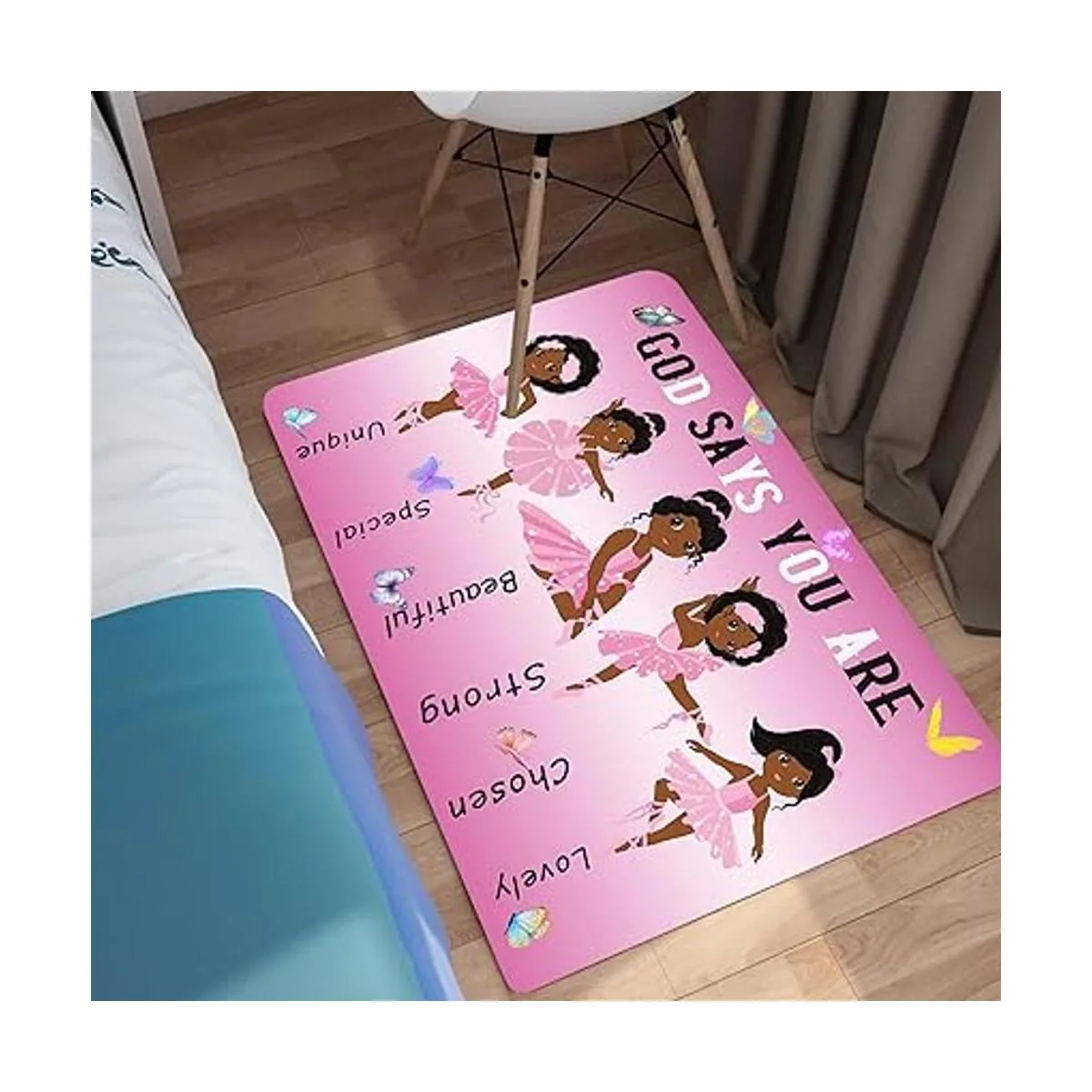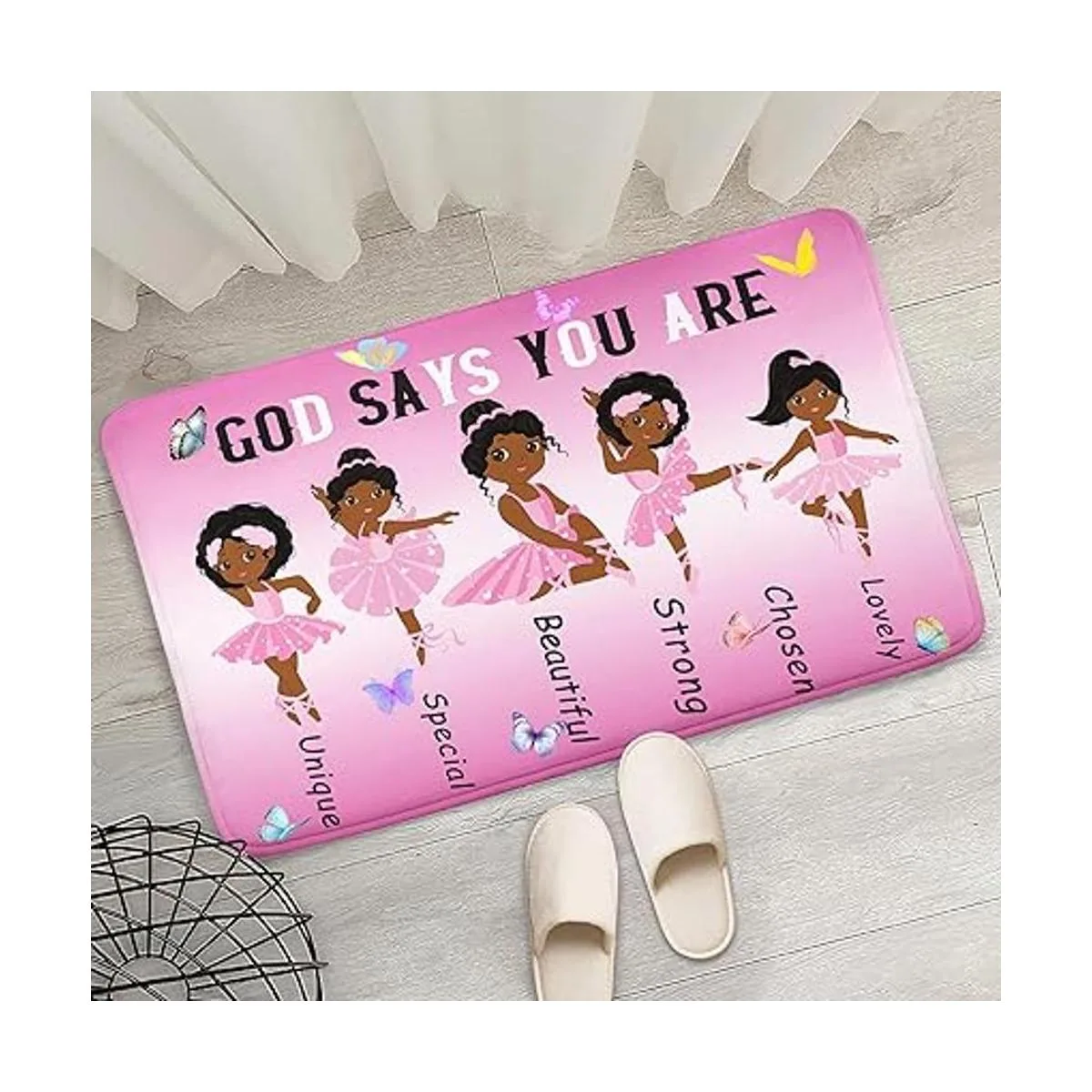 Alfombras afroamericanas de niña negra para dormitorio, God Says You are Pink Girls Alfombra de suelo para sala de estar, alfombras de princesa bailarina para entrada, decoración de habitación religiosa, regalo, 35 x 23 pulgadas 2 x 3 pies
