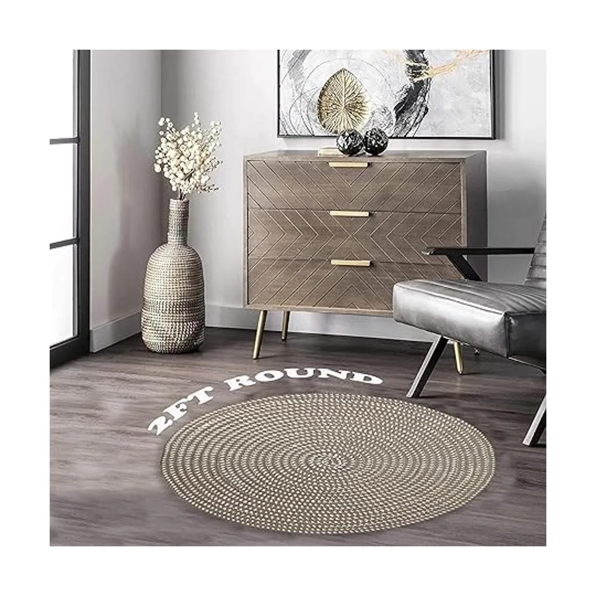 Alfombras redondas tejidas a mano para sala de estar, dormitorio, estudio, silla de computadora, alfombrilla redonda para elevadores, alfombra giratoria para silla de café 2 pies, redonda, color camello oscuro