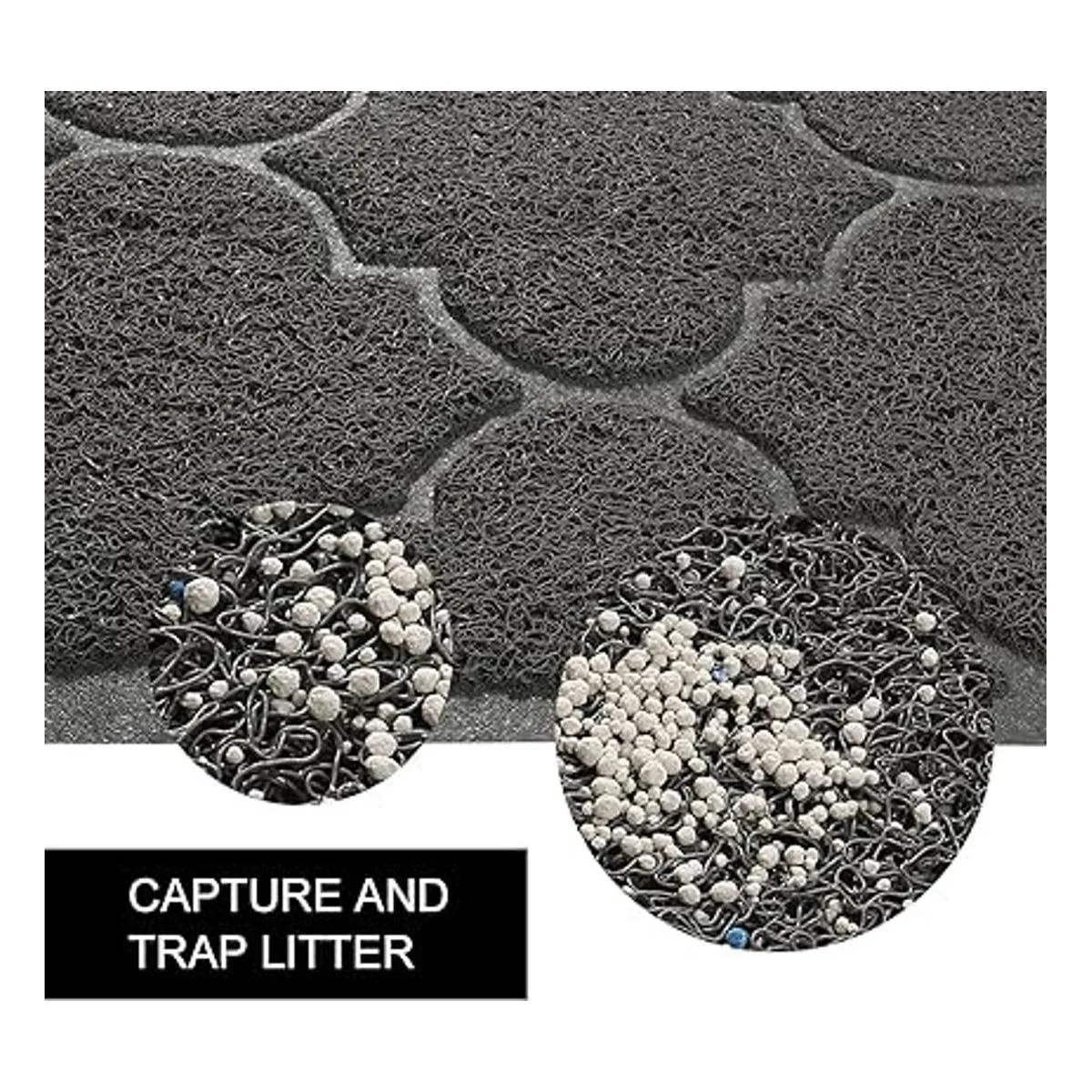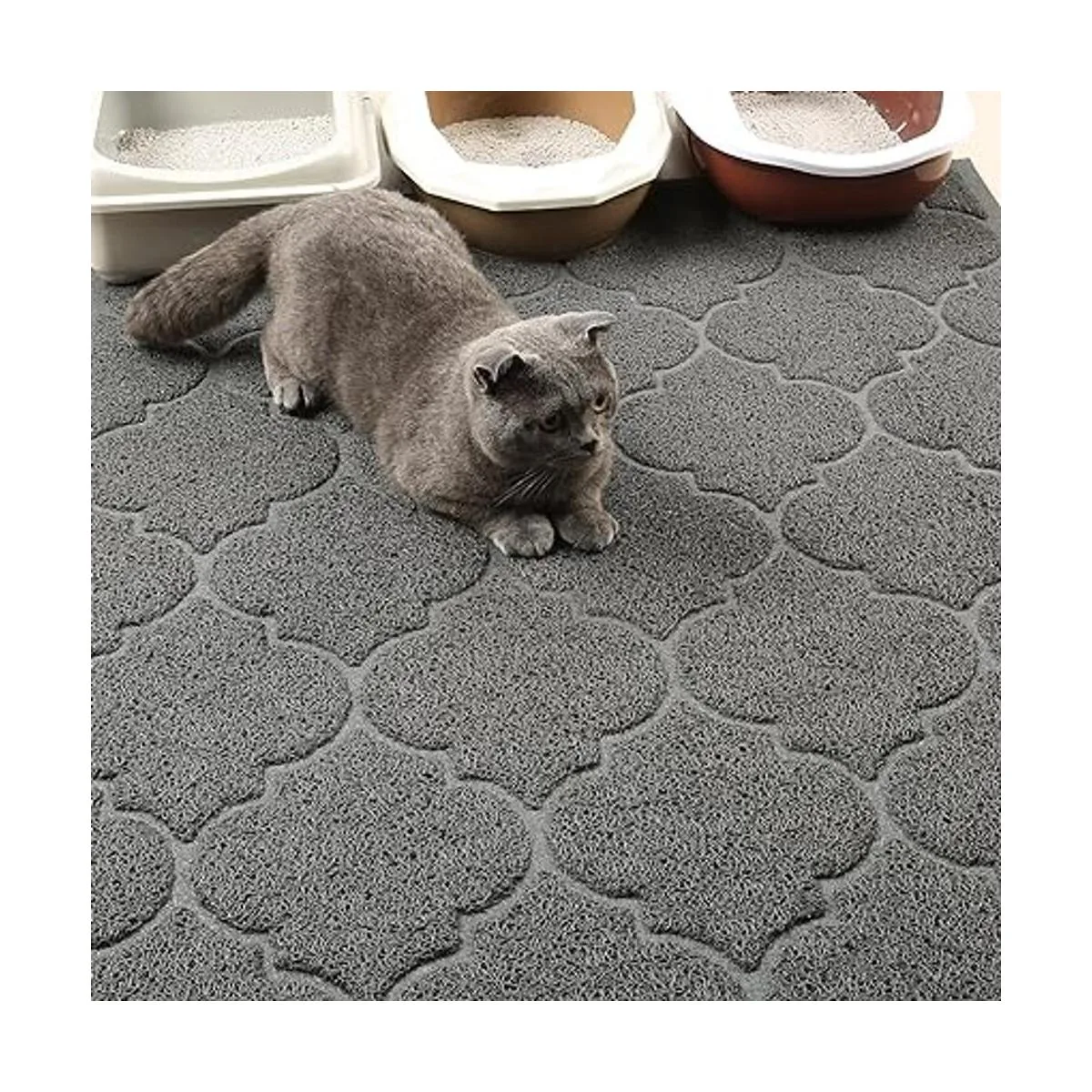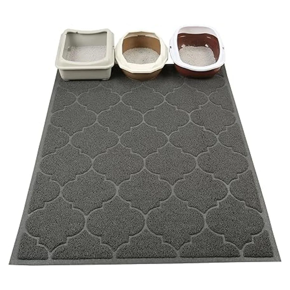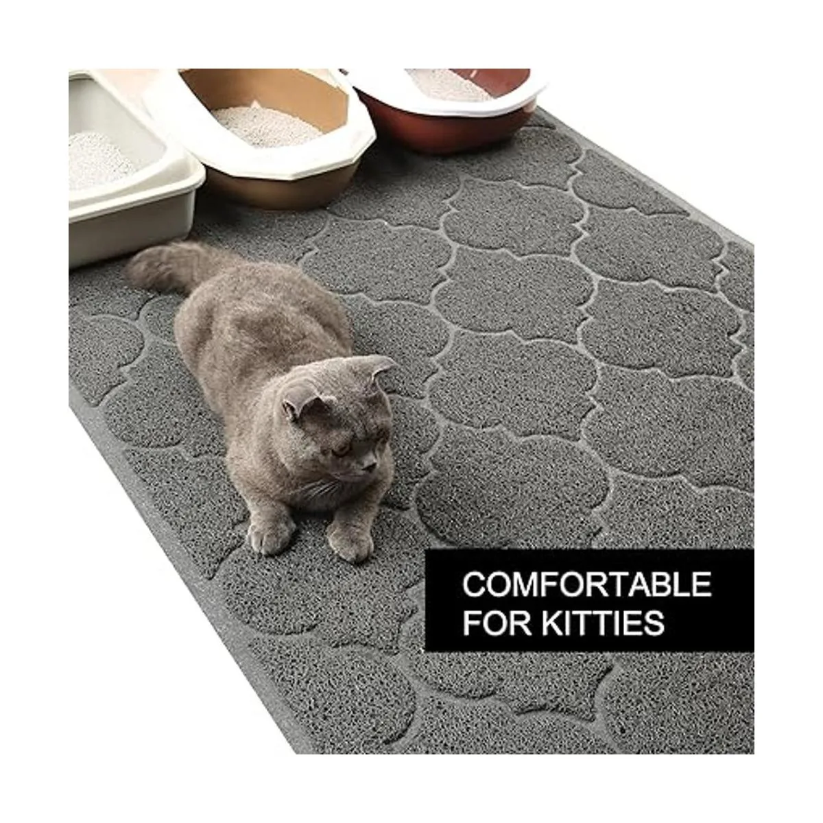 Alfombrilla de arena para gatos grande de 47 x 36. La alfombra es de 47 de largo x 36 de ancho, por lo que ofrece un buen lugar para que tu gato descanse y juege. Tu habitación ya no estará desordenada en todas partes.