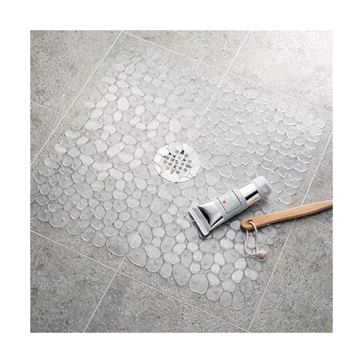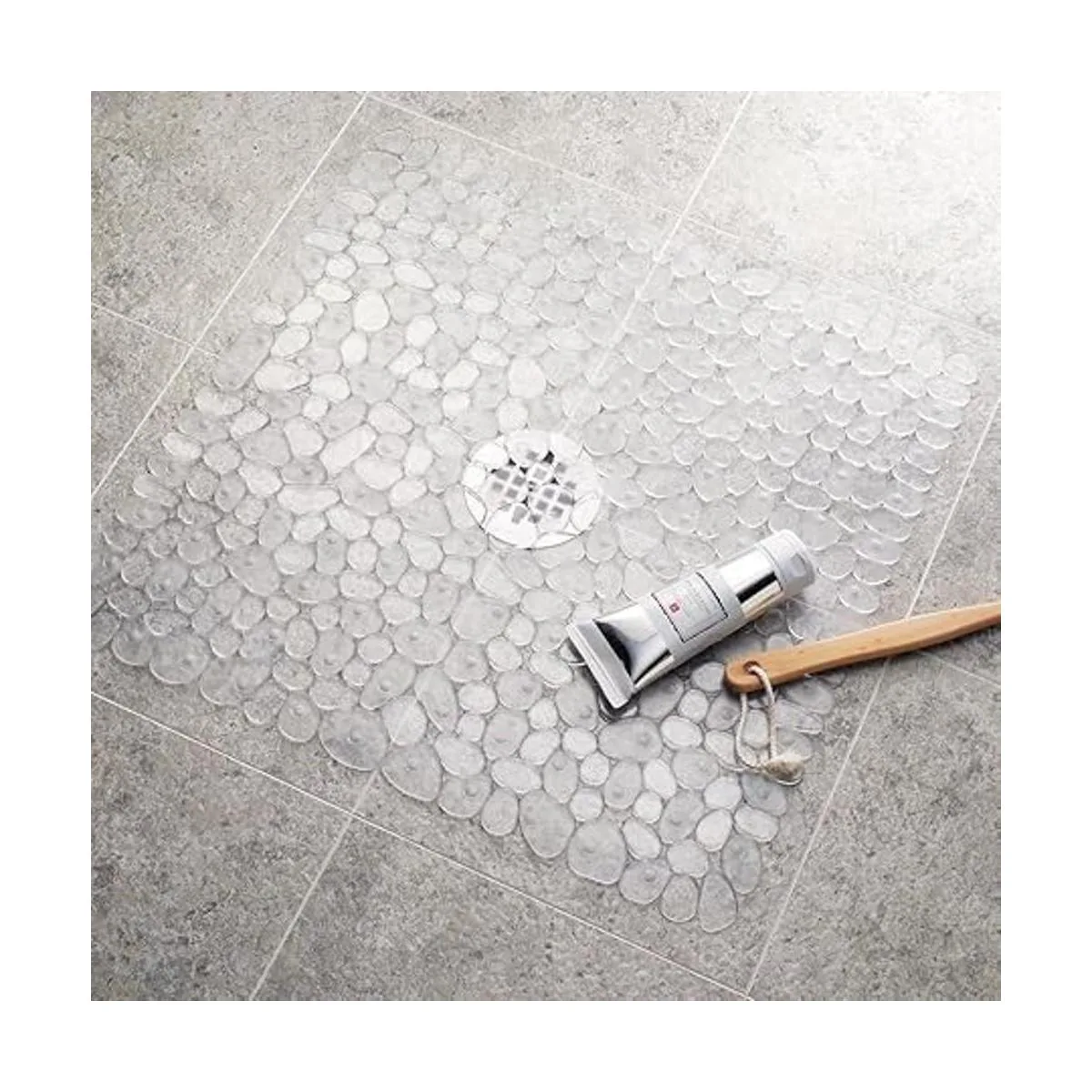 Alfombrilla de baño, succión antideslizante para ducha InterDesign Pebblz, Vinilo, Transparente, 0