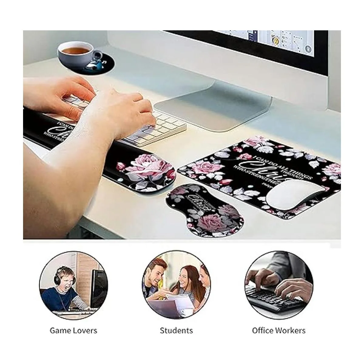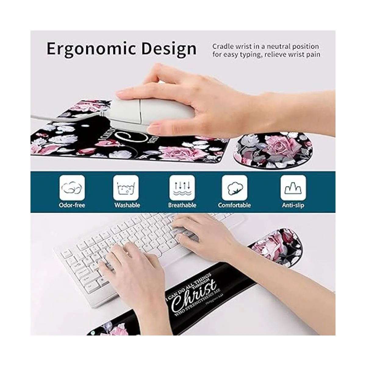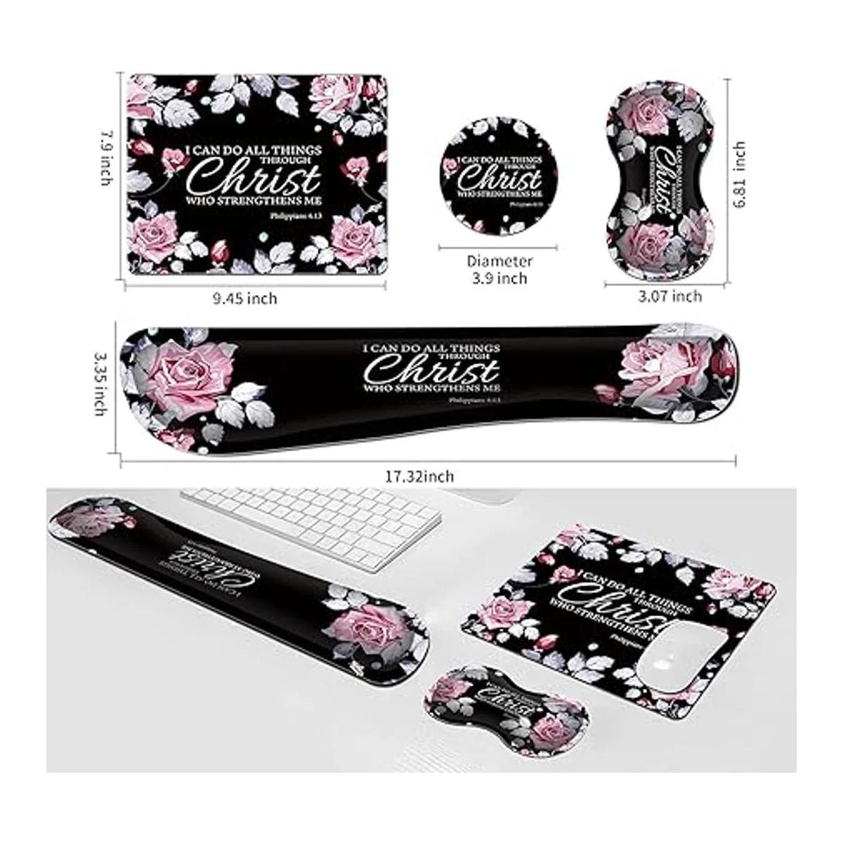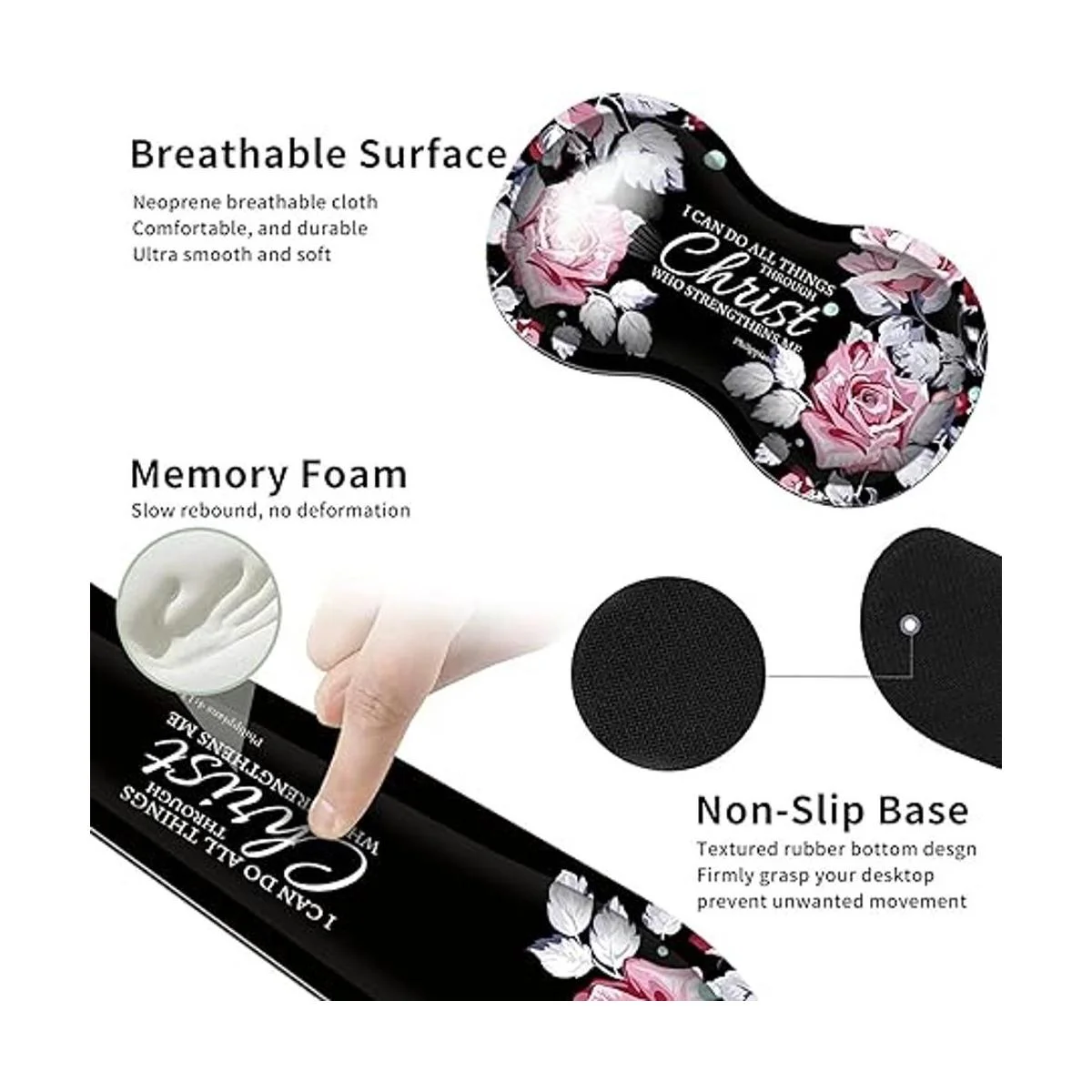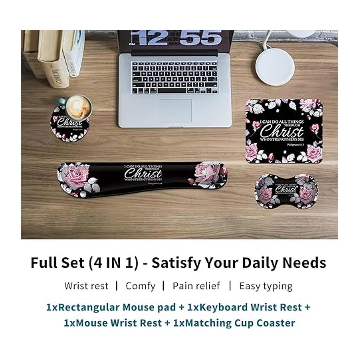 Alfombrilla de mouse con reposamuñecas, reposamuñecas para teclado, posavasos, todo en uno, juego de 4 almohadillas para mouse para aliviar el dolor, soporte de muñeca de espuma viscoelástica RYUITHDJP para oficina, hogar, cita inspiradora cristiana