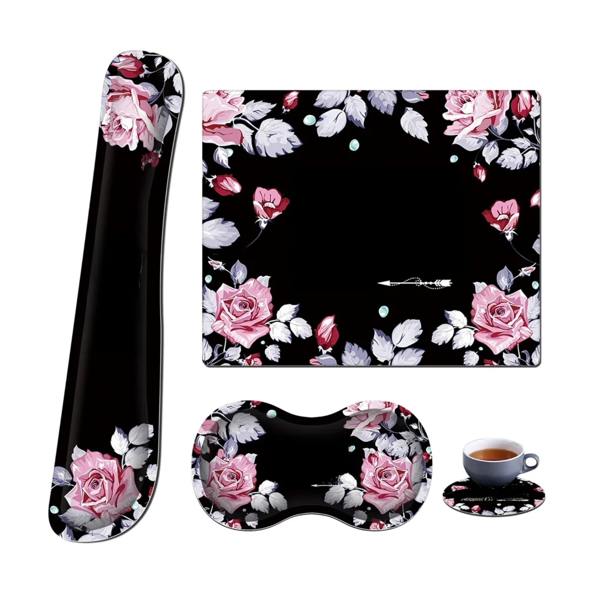 Juego de 4 almohadillas para ratón: viene con 1 reposamuñecas para teclado 1 reposamuñecas para mouse 1 posavasos para taza. La mejor combinación para ahorrar tiempo para la selección, perfecta para la oficina, el hogar, la escuela, etc.