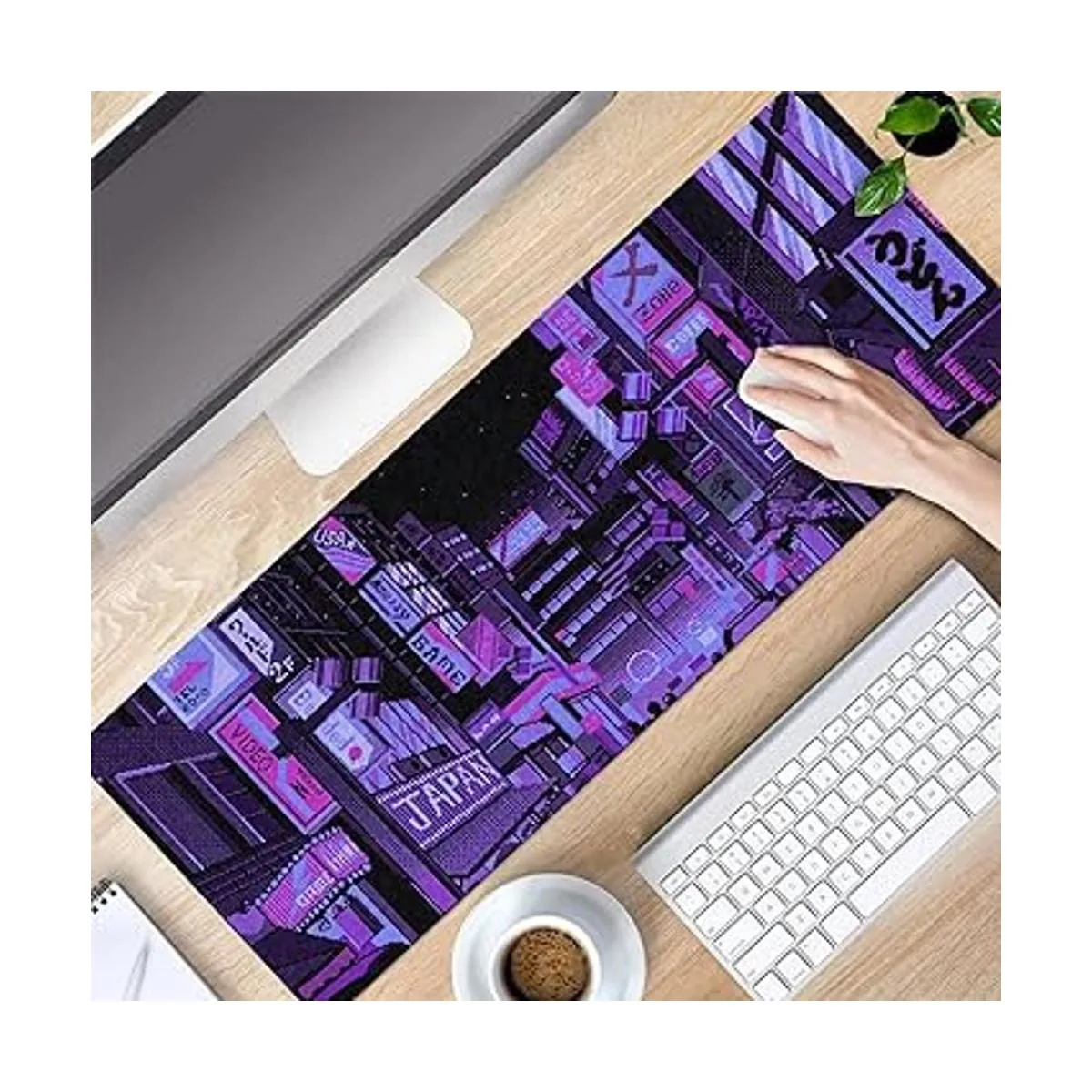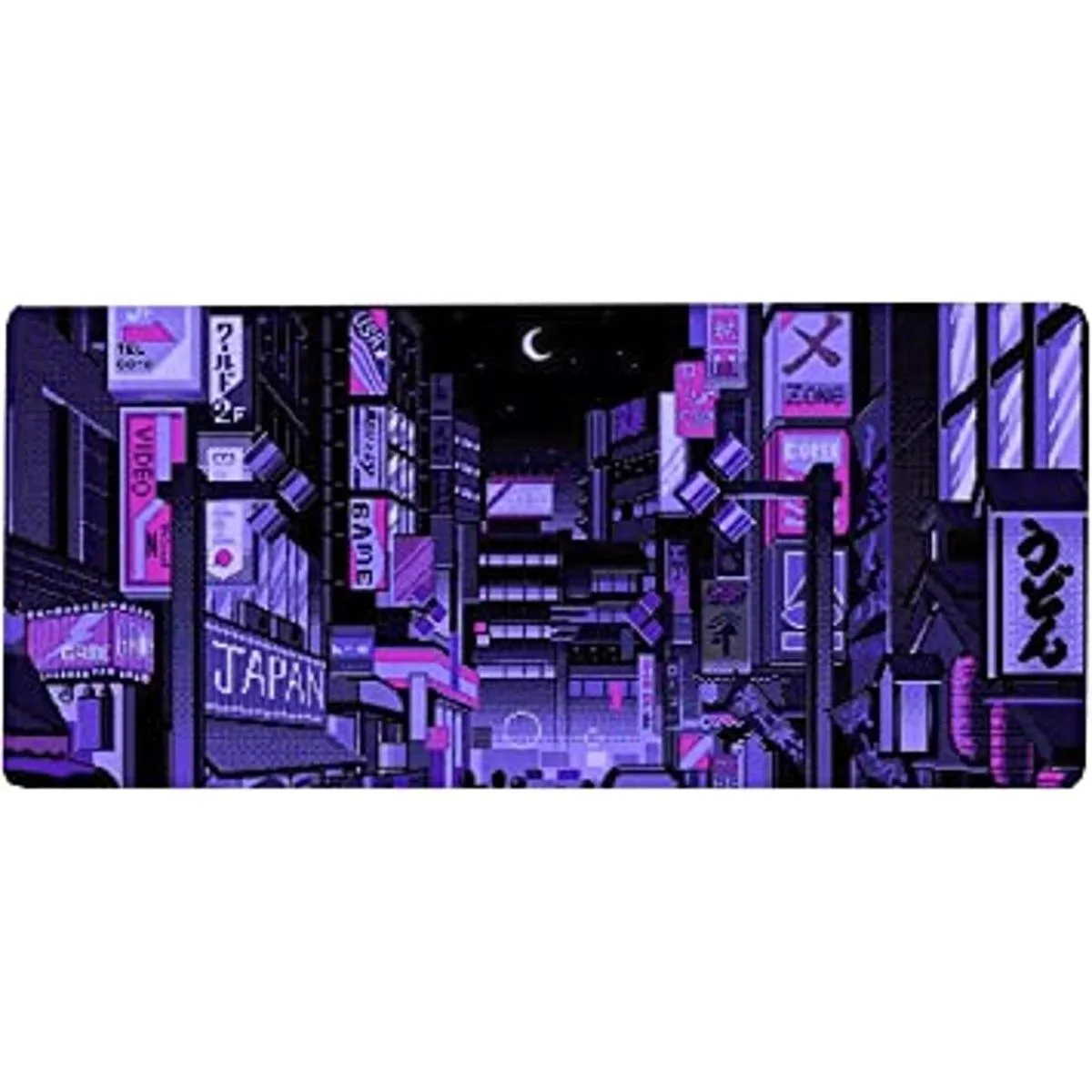 Alfombrilla de mouse japonesa retro Vaporwave de anime morado oscuro para computadora de escritorio de regazo, alfombrilla de mouse de anime Kawaii grande para mouse y teclado