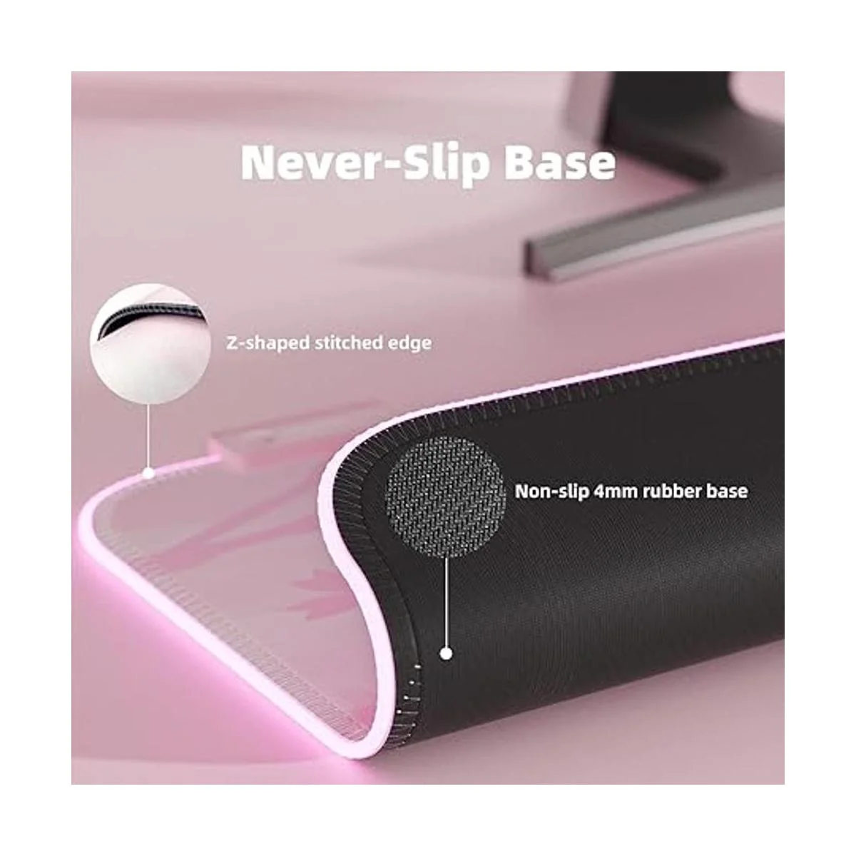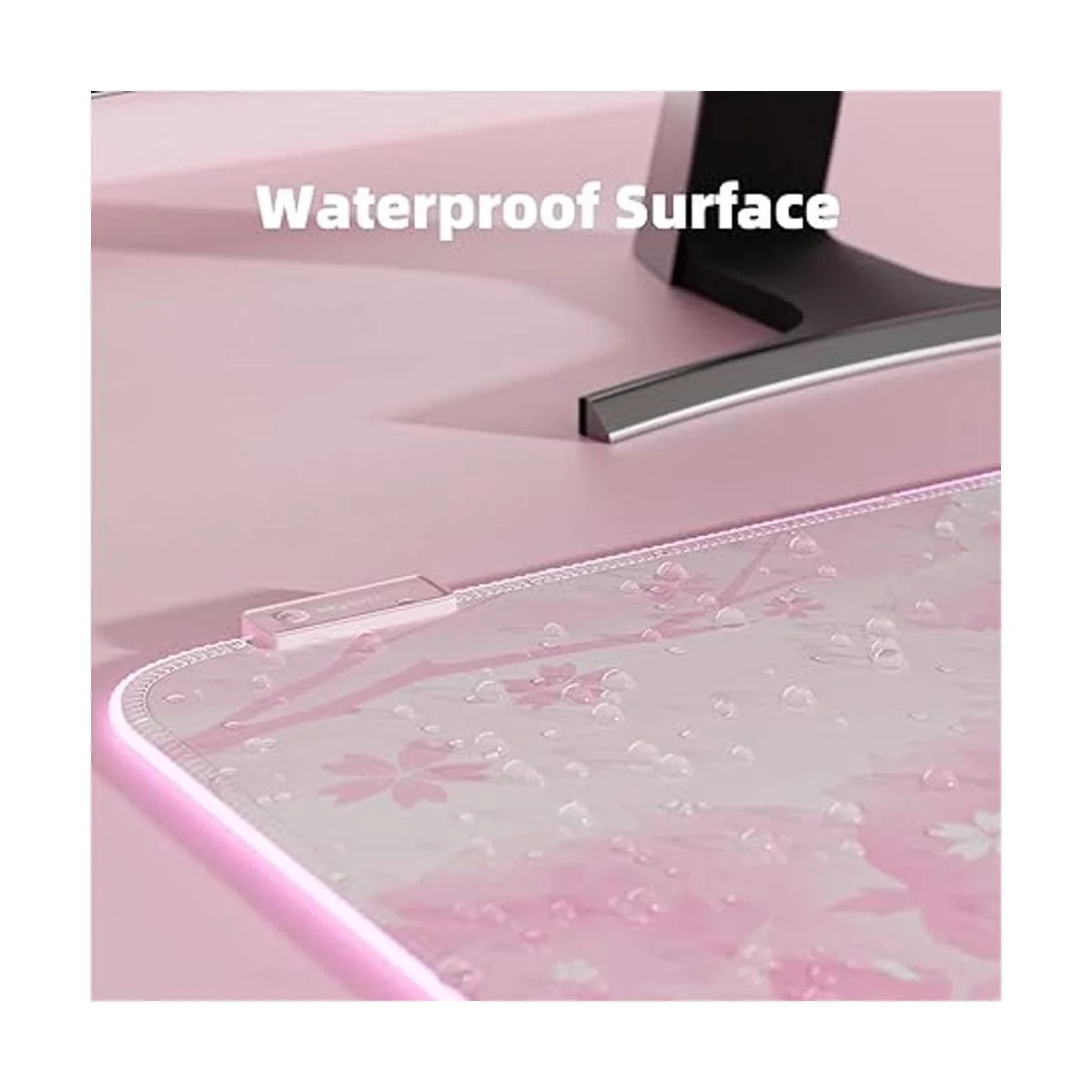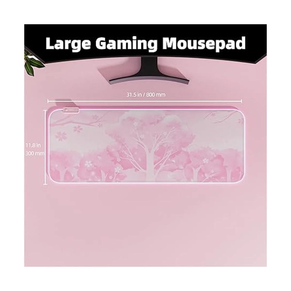 Alfombrilla de mouse LED RGB rosa para juegos, 14 modos de brillo, alfombrilla de mouse extra grande para juegos, goma impermeable, antideslizante, bonita alfombrilla de Sakura, teclado grande extendida y alfombrilla de mouse para jugadores, oficina y hogar, 31.496 x 11.811 x 0.157 in