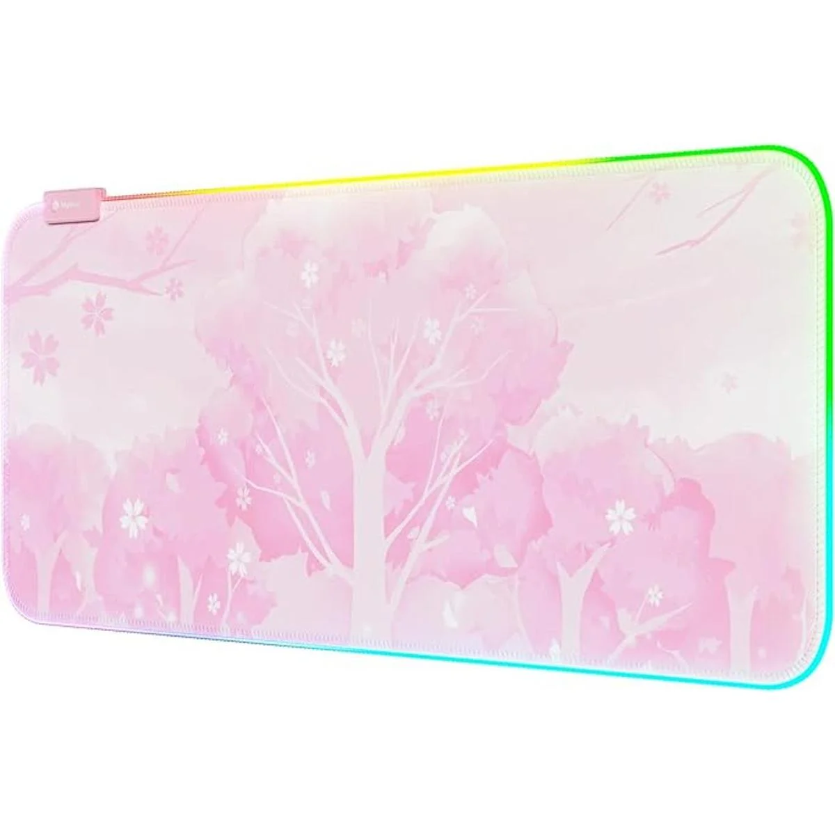Diseño de flores de cerezo rosa Sakura Alfombrilla de mouse para juegos con temática de cerezo japonés Mytrix con luz RGB; alfombrilla de mouse grande XXL rosa para el hogar y la oficina; destaca de lo ordinario, trae las vibraciones primaverales a tu escritorio