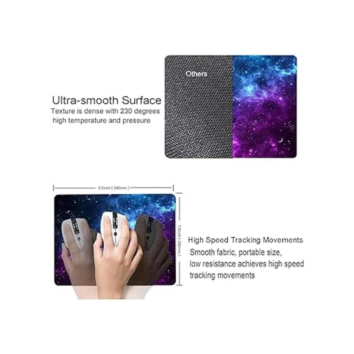 Superficie ultrasuave: la textura es más densa con tratamiento de alta presión de 230 F. El ratón se puede mover rápidamente y colocar con precisión en la superficie lisa. Ideal para tu laptop, computadora y PC.