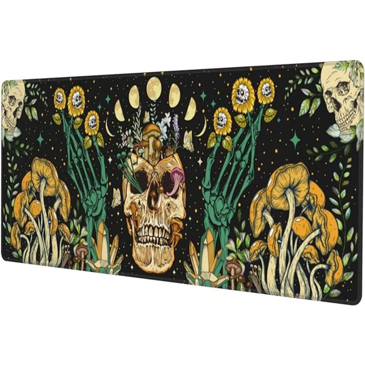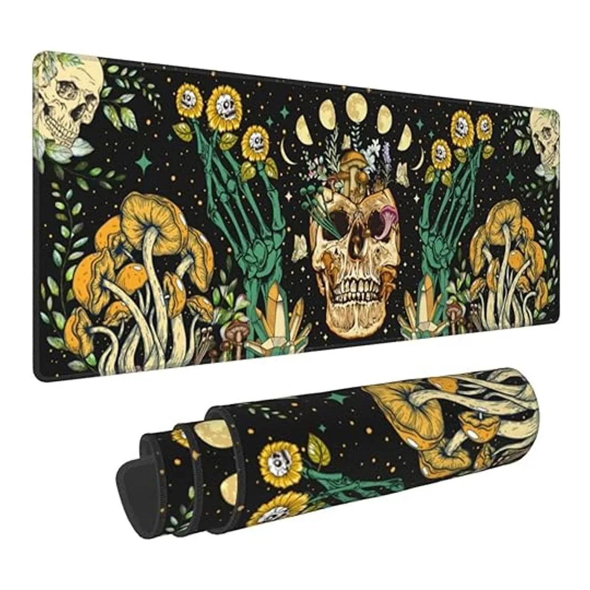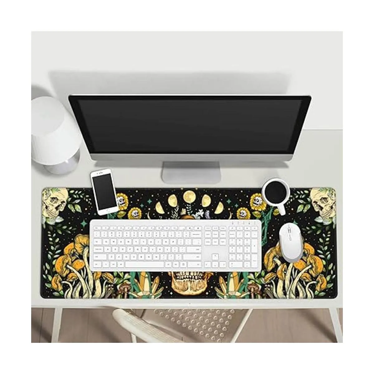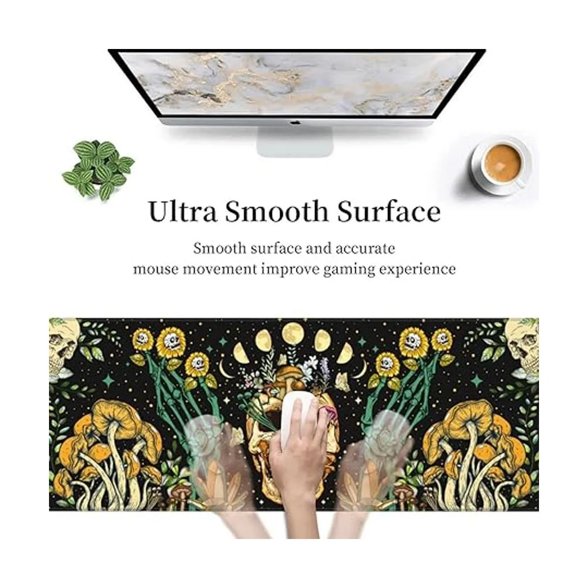 Alfombrilla de mouse para juegos de mariposas con forma de hongos y fase lunar XL, alfombrilla de mouse grande extendida, alfombrilla de escritorio larga antideslizante de goma con bordes cosidos, tapete de juego para oficina y hogar, jugadores, 31.5 x 11.8 pulgadas