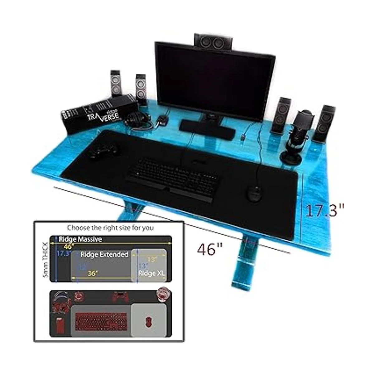 Alfombrilla de mouse Pro Gaming 0.197 in Traverse Ridge Massive 46 pulgadas 46 x 17.3 x 0.20 pulgadas extra gruesa NegroNegro Poli de velocidad de tejido denso, control superior, borde cosido, lavable, tapete de escritorio grande gigante