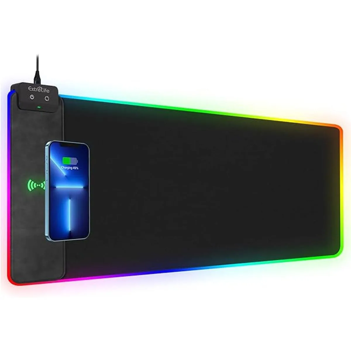Alfombrilla de mouse RGB de carga inalámbrica para juegos de 10 W, 31.5 x 15.7 pulgadas, alfombrilla de mouse RGB, alfombrilla de escritorio, base de goma antideslizante, teclado de computadora, alfombrilla de escritorio para oficina, hogar, juegos, trabajo