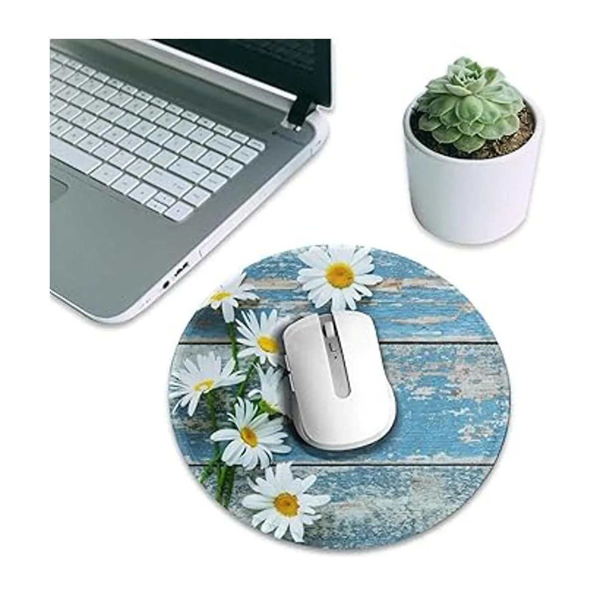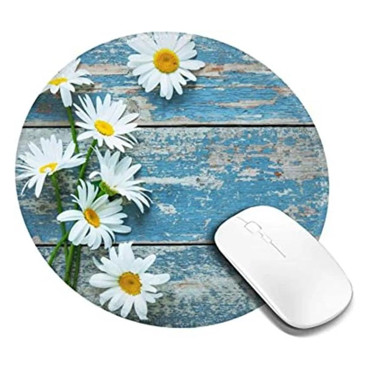 Alfombrilla de ratón con diseño de margaritas, diseño de margaritas, diseño de madera, redondo, mini círculo, para decoración del hogar, oficina, accesorios de escritorio para mujer