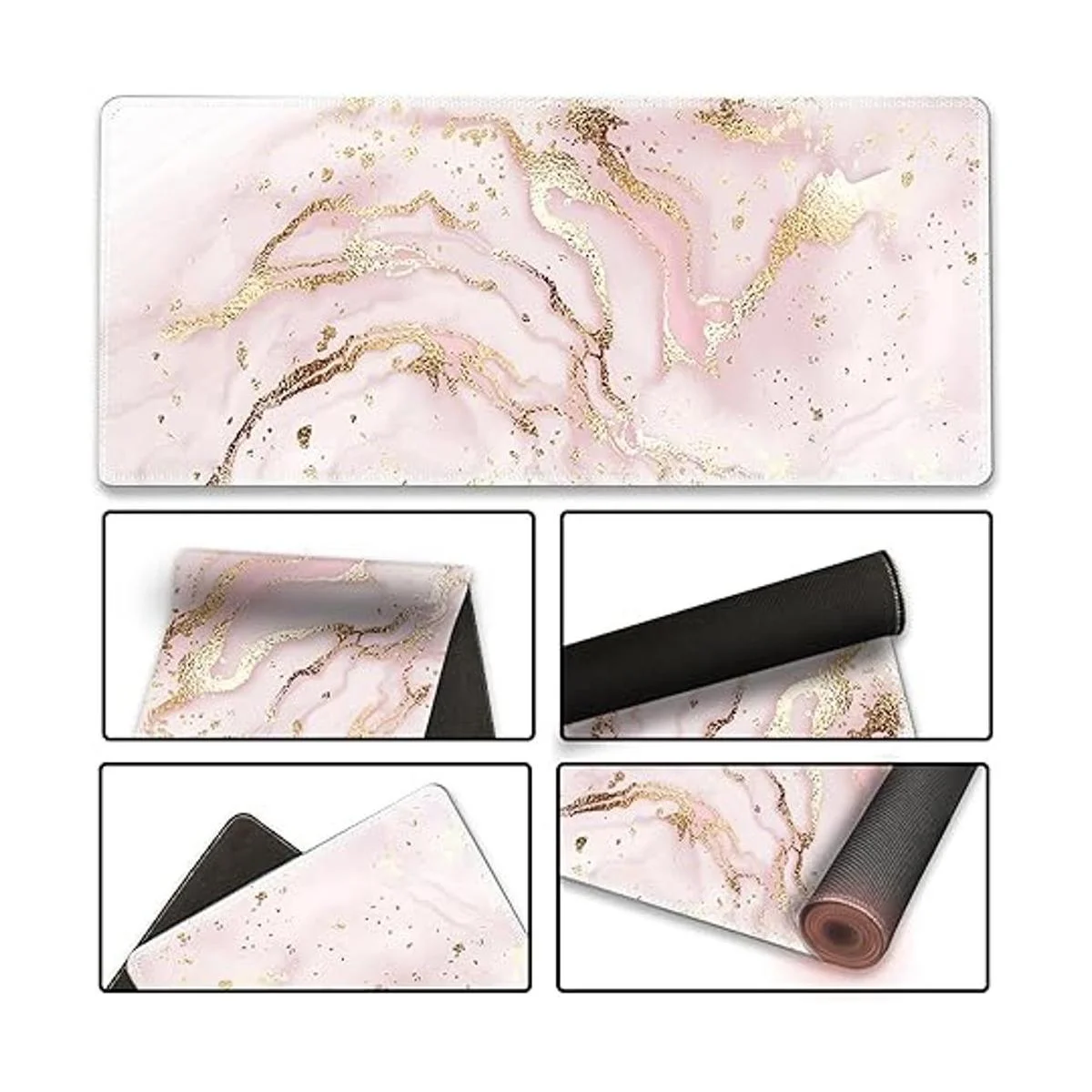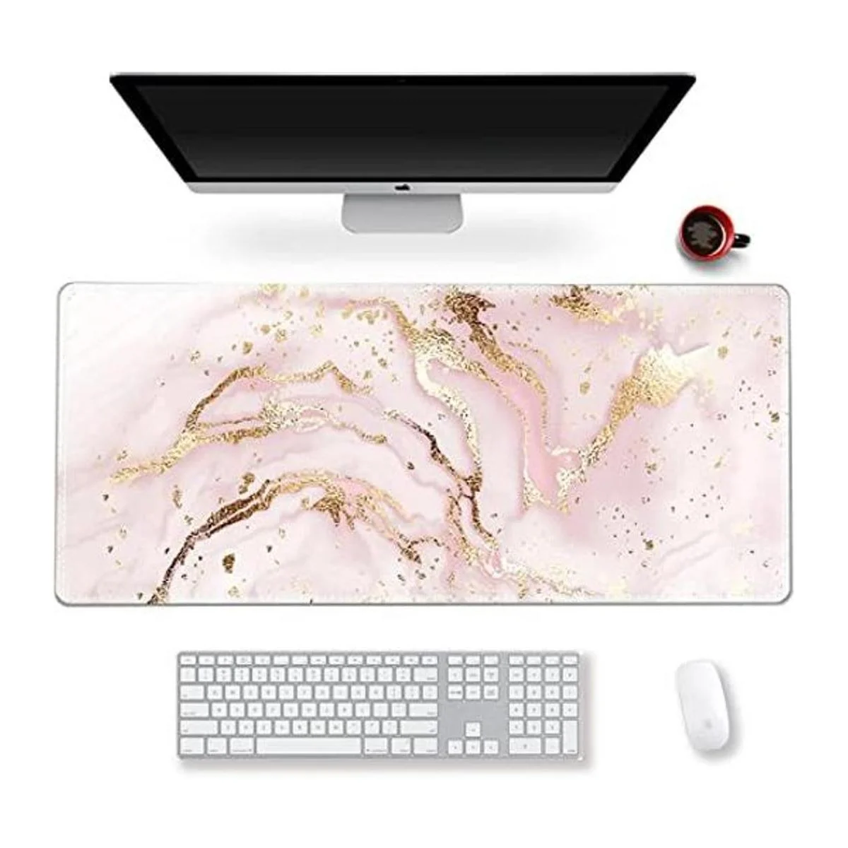 Alfombrilla de ratón extendida para juegos XXL ArtSo para teclado grande, alfombrilla larga para escritorio o decoración de escritura, base de goma antideslizante, bordes cosidos para trabajo, juegos, oficina, hogar, 35.1 x 15.7 pulgadas, mármol rosa