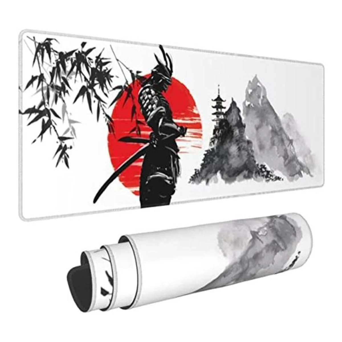 Alfombrilla de ratón japonesa con diseño de Samurai Bushido para juegos XL, con base de goma antideslizante, almohadilla de escritorio con bordes cosidos, almohadilla de mouse grande extendida, 31.5 x 11.8 pulgadas