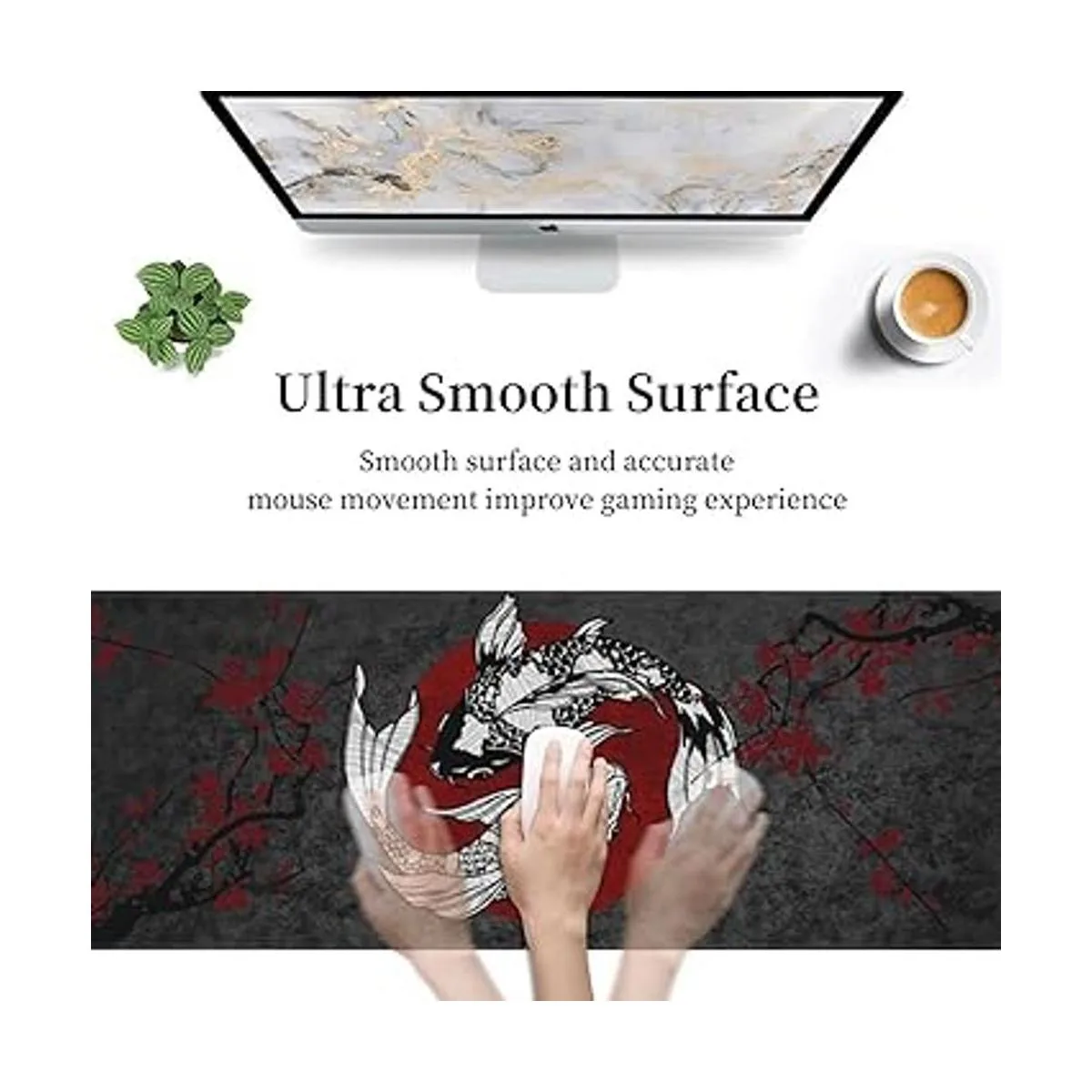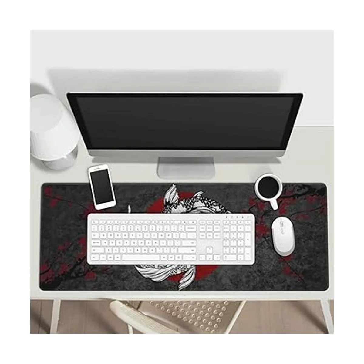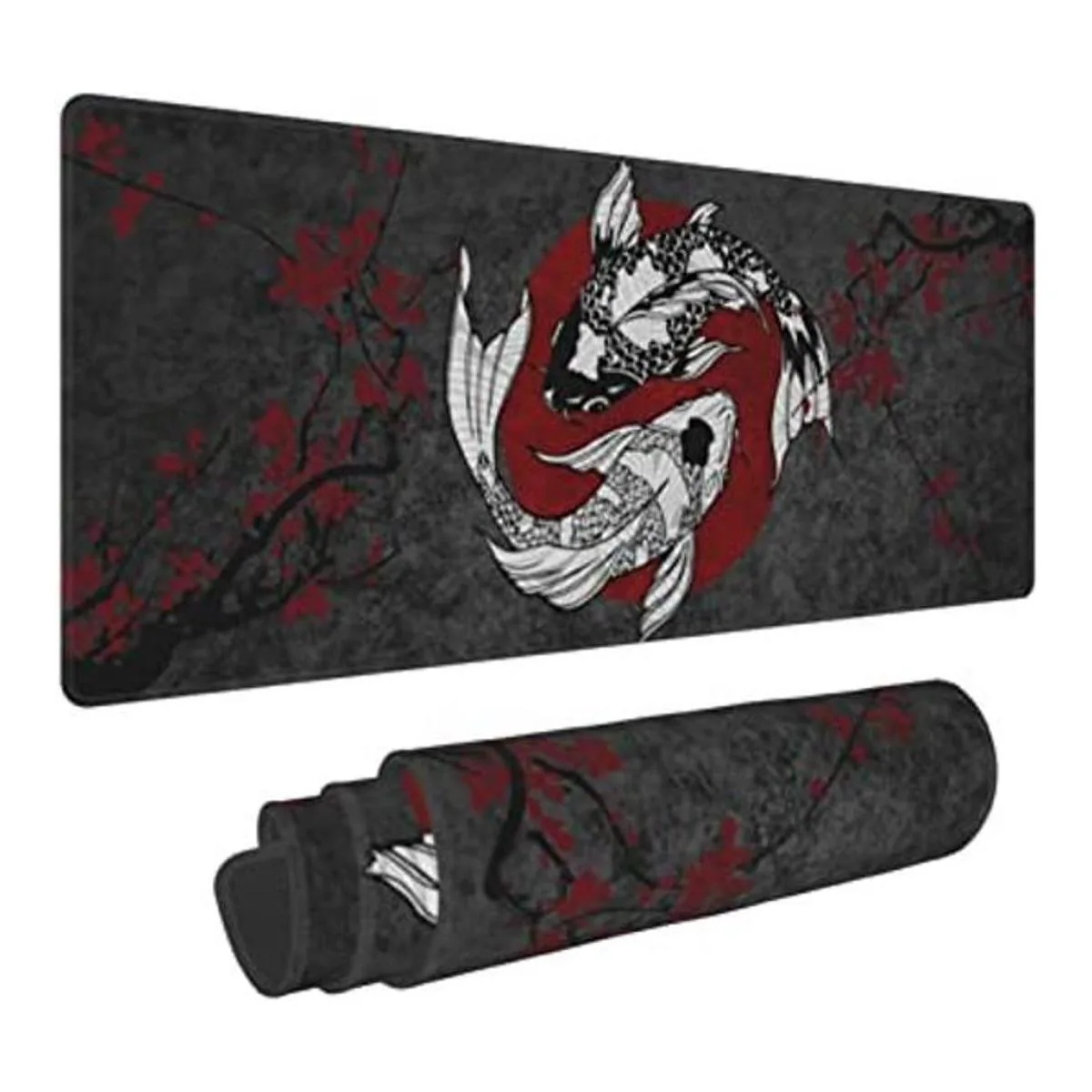 Alfombrilla de ratón japonesa Koi Fish Ying Yang negro y rojo XXL XL para juegos de escritorio, antideslizante larga extendida alfombrilla de ratón alfombrilla de goma de 31.5 x 11.8 pulgadas