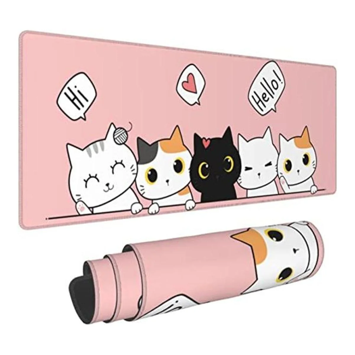 Alfombrilla de ratón para juegos de gatos y gatos, tamaño grande, XL, color rosa, para escritorio, Kawaii, almohadillas largas y extendidas, para decoración del hogar, oficina, accesorios de decoración