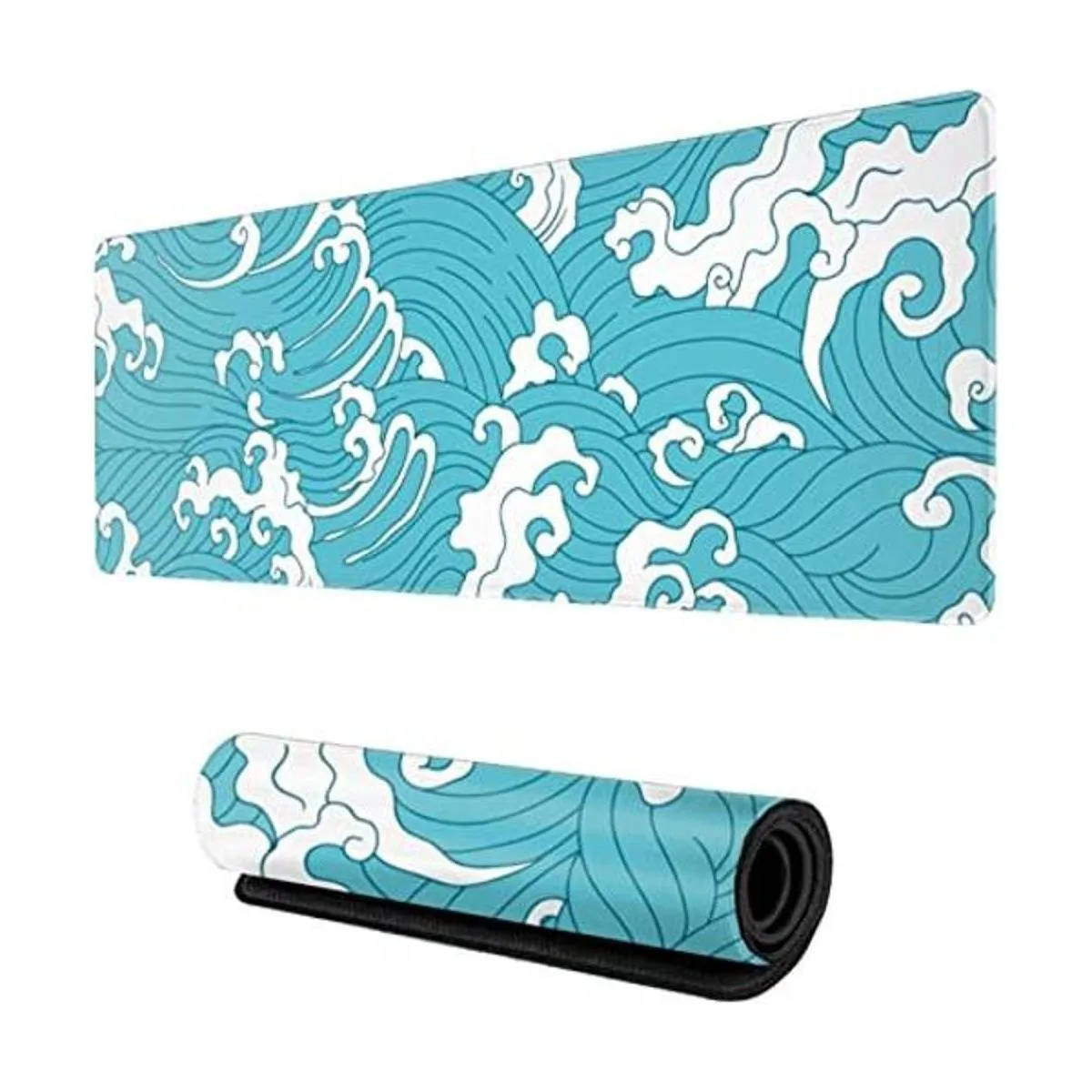 Alfombrilla de ratón para juegos japonesa azul y blanco, XL, alfombrilla de ratón de goma antideslizante grande, almohadilla de escritorio con bordes cosidos, almohadilla de ratones larga extendida, 31.5 x 11.8 pulgadas